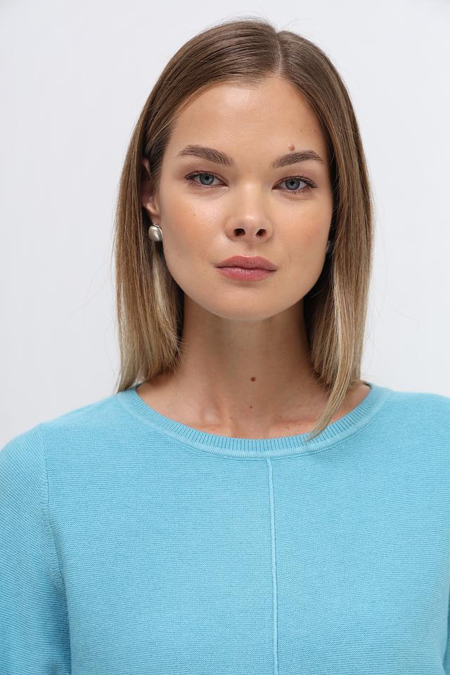 Этот женский пуловер от Rabe collection выполнен в нежном бирюзовом цвете и станет прекрасным дополнением к вашему гардеробу. Модель имеет прямой крой и длину до бедер, что делает ее универсальной и подходящей для разных типов фигур.
