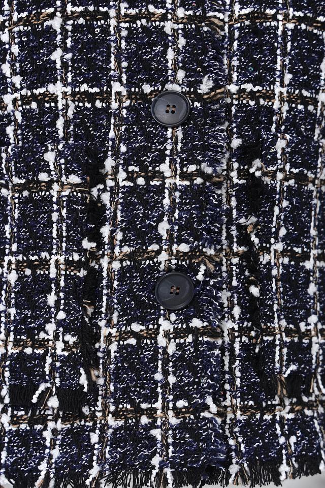 Жакет Rabe collection тёмно-синего цвета в классическую клетку – стильное и элегантное решение для создания женственного образа. Модель с застёжкой на пуговицы и отделкой бахромой придаст вашему луку изысканность и неповторимость. Состав: полиэстер 100%