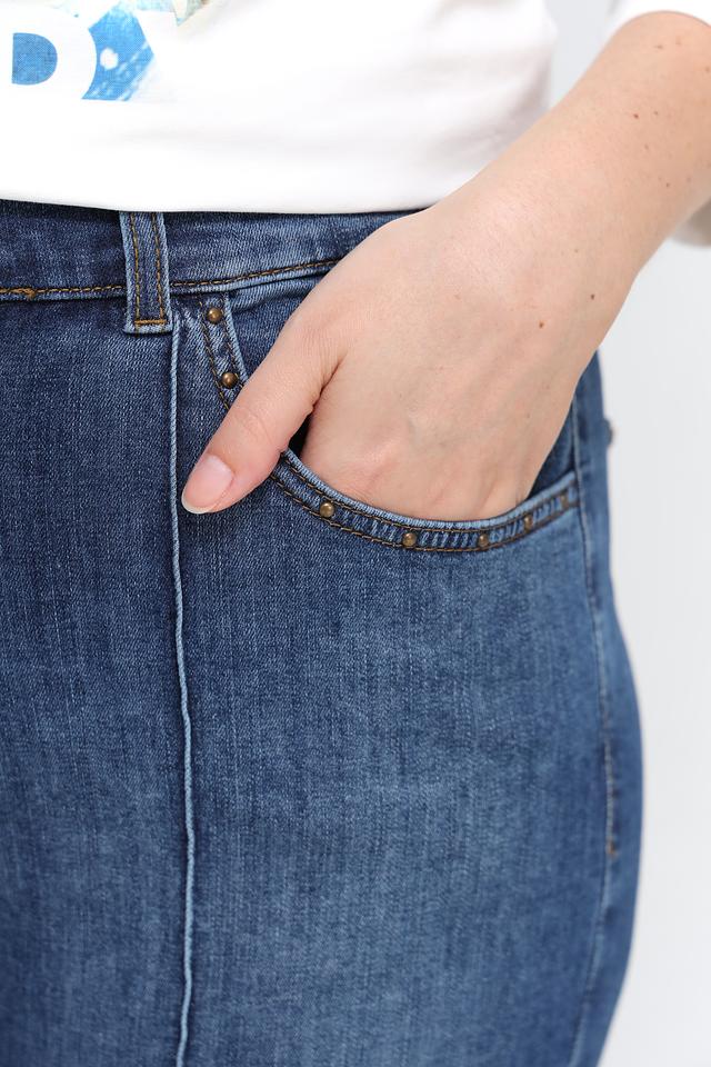 Джинсы имеют прямой крой, обеспечивающий комфортную посадку по фигуре. Пояс на пуговицах и молнии гарантирует надежную фиксацию. Спереди расположены два боковых кармана и два задних кармана с аккуратной отделкой.