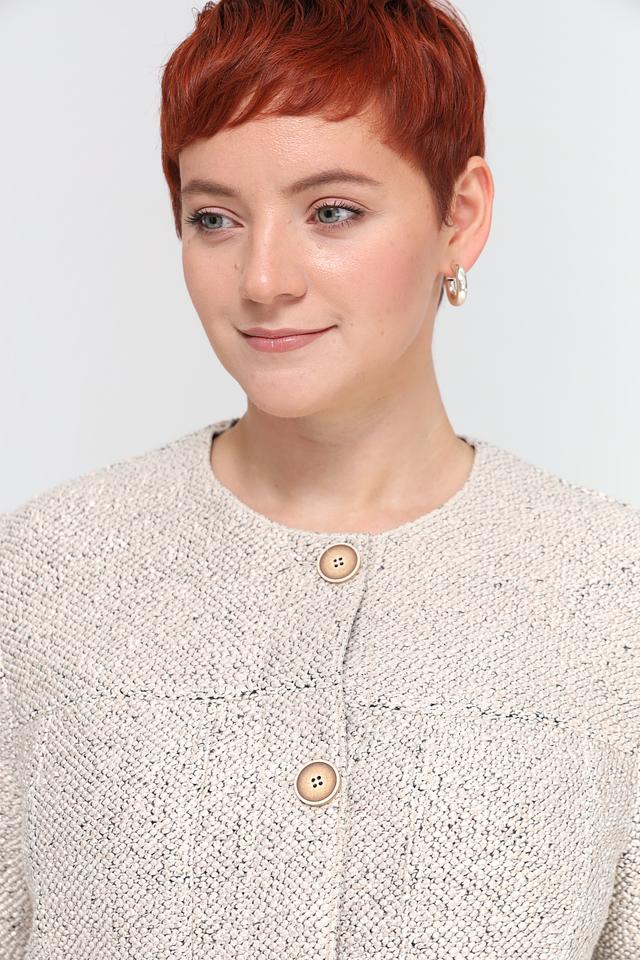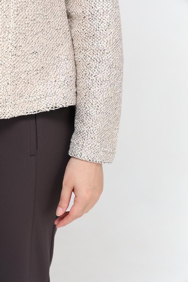 Жакет имеет длинные рукава и круглый вырез горловины. Он идеально подходит для создания повседневных образов, а также для более формальных мероприятий. Сочетайте его с брюками, юбками или платьями, чтобы создать стильный и элегантный образ.