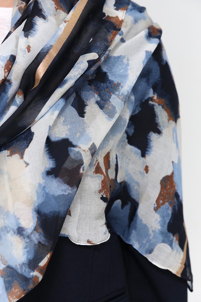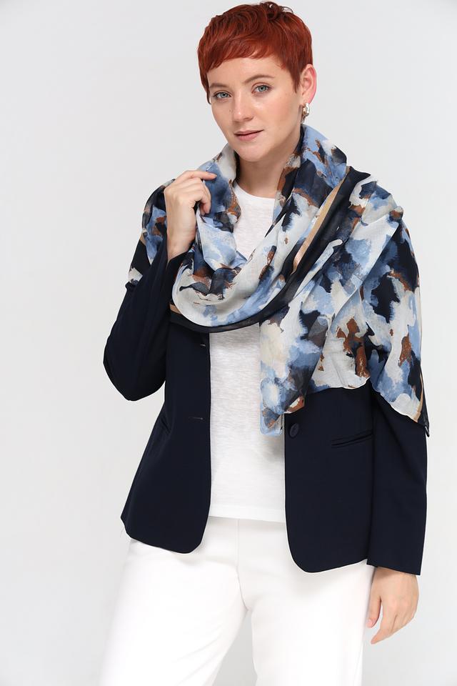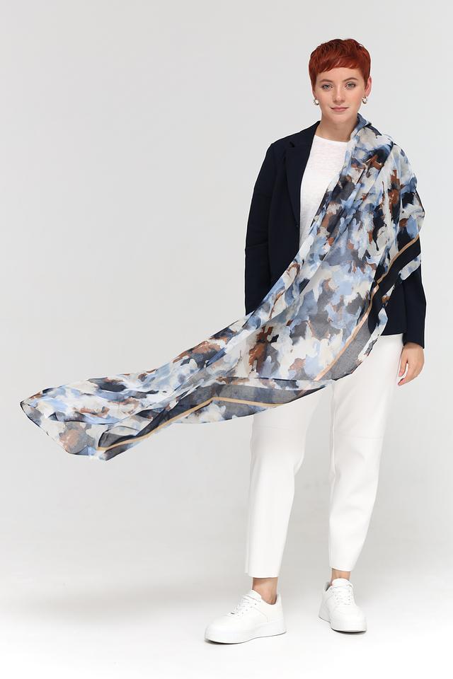 Этот шарф от Rabe collection – идеальный аксессуар для создания завершенного образа. Шарф выполнен в голубой цветовой гамме и украшен абстрактным рисунком, сочетающим в себе оттенки синего, коричневого и бежевого.