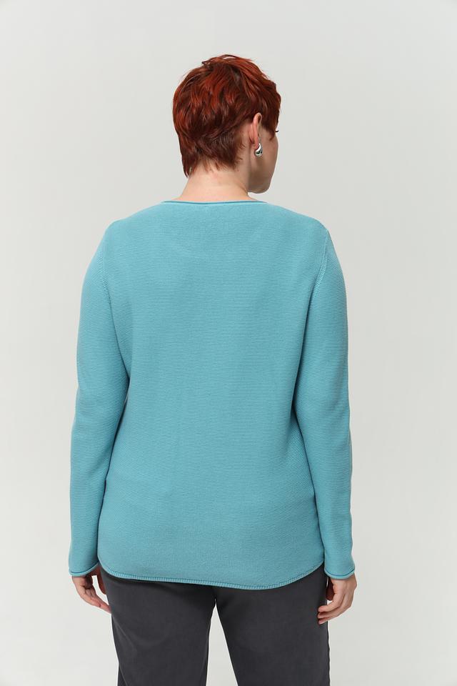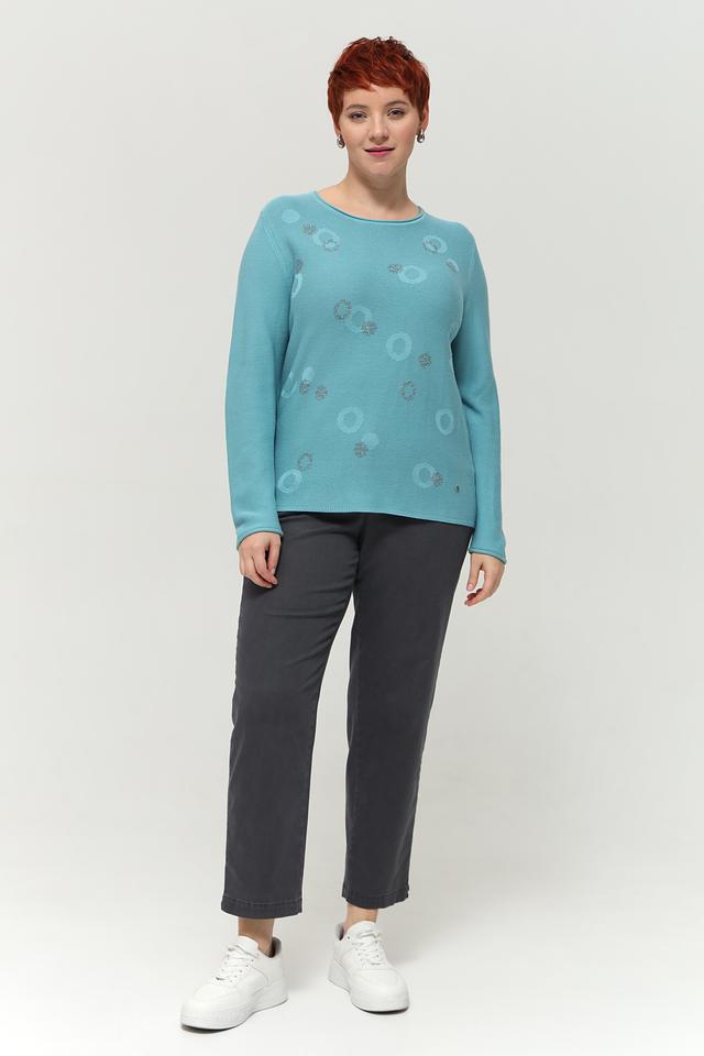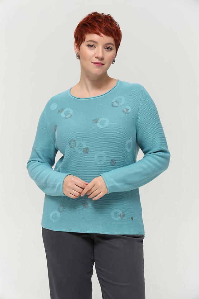 Женский пуловер Rabe collection бирюзового цвета с оригинальным узором из кругов. Изготовлен из мягкого и приятного к телу сочетания хлопка и полиакрила, обеспечивающего комфорт и долговечность изделия. Состав: хлопок 50%, полиакрил 50%