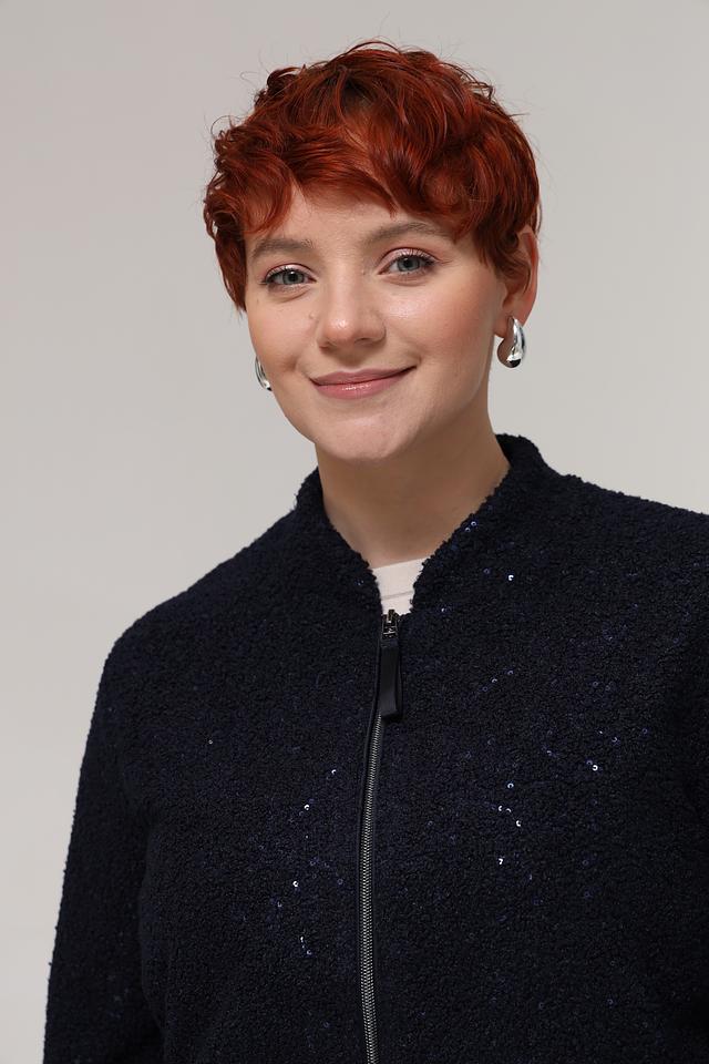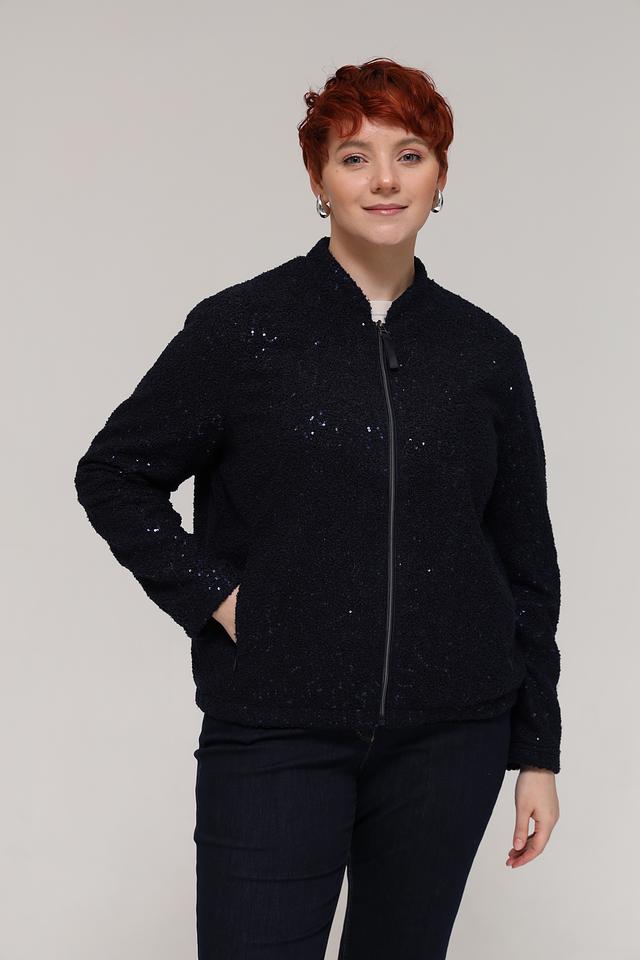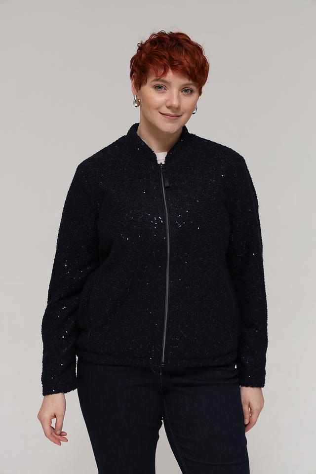 Чёрный жакет от Rabe collection – стильная модель с деликатным блеском. Жакет имеет застёжку-молнию и выполнен из полиэстера, что обеспечивает комфорт и практичность в носке. Состав: полиэстер 100%