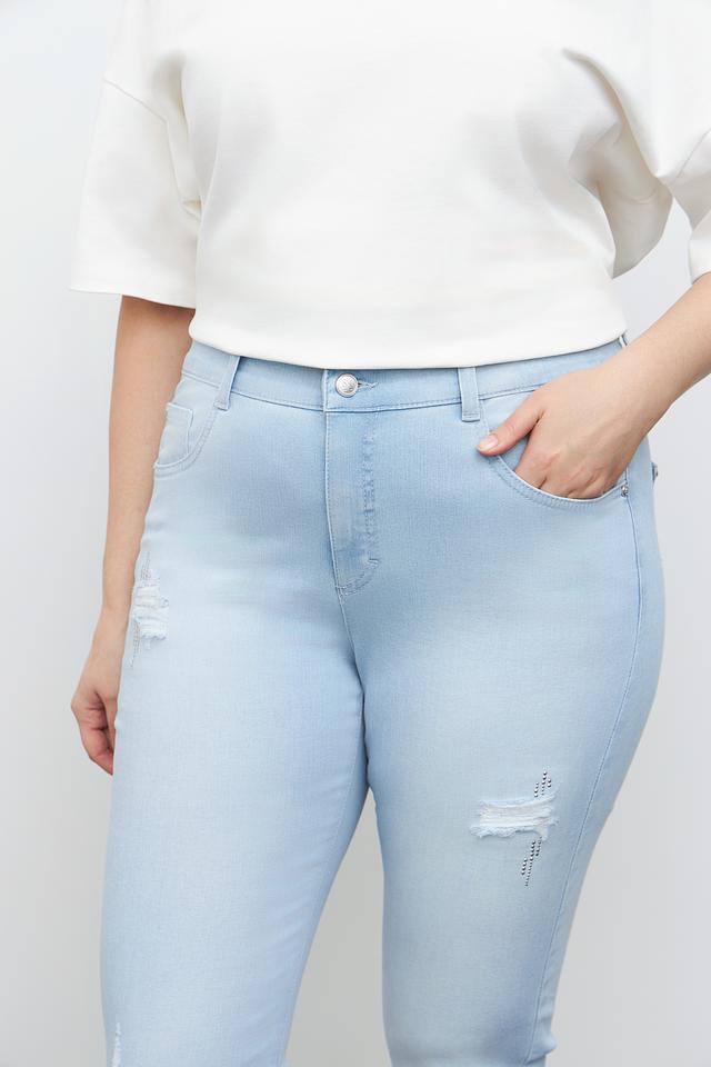 Голубые джинсы от Rabe collection с эффектом потертостей и высокой посадкой. Изготовлены из хлопка с добавлением полиэстера и эластана для комфорта и лучшей посадки. Состав: хлопок 92%, полиэстер 6%, эластан 2%