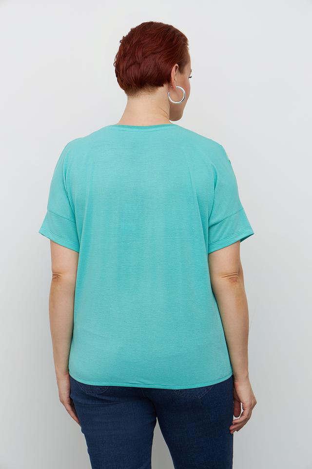 Модель имеет свободный крой, который обеспечивает комфорт в носке и позволяет создать непринужденный образ. Короткие рукава и округлый вырез горловины делают блузу универсальной и подходящей для различных случаев.