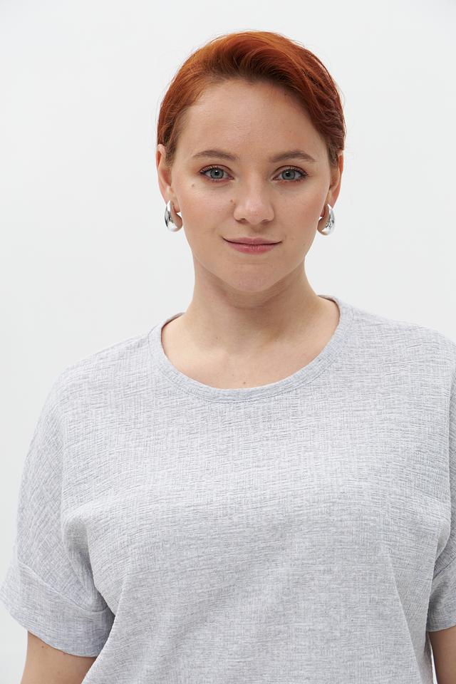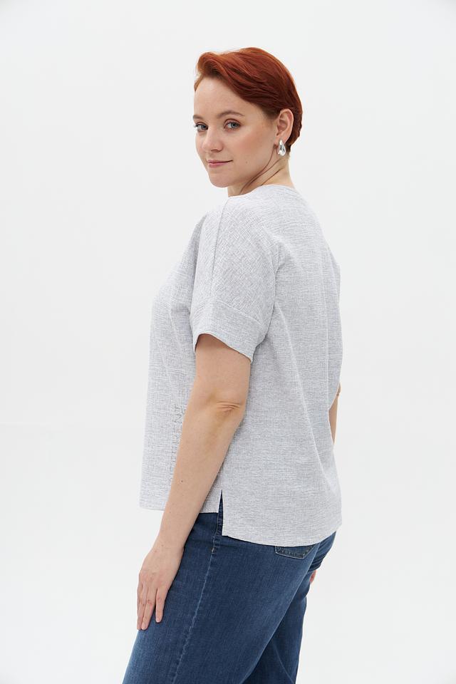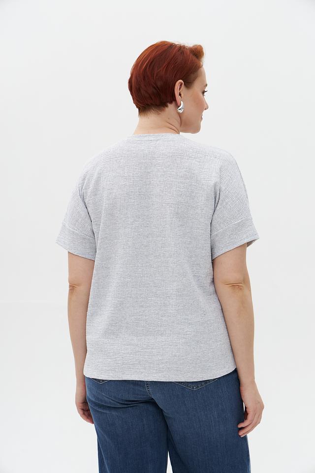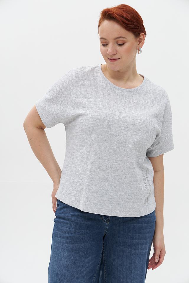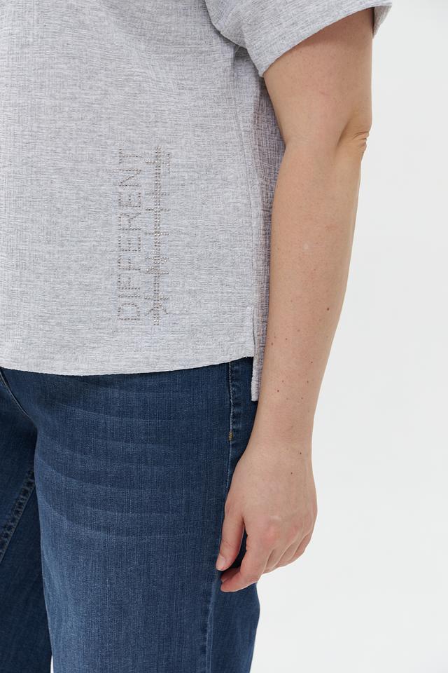 Серая блуза от Rabe collection из смесового хлопка с короткими рукавами и оригинальным принтом. Изделие выполнено из приятной на ощупь ткани, сочетающей в себе полиэстер и хлопок. Состав: полиэстер 50%, хлопок 50%