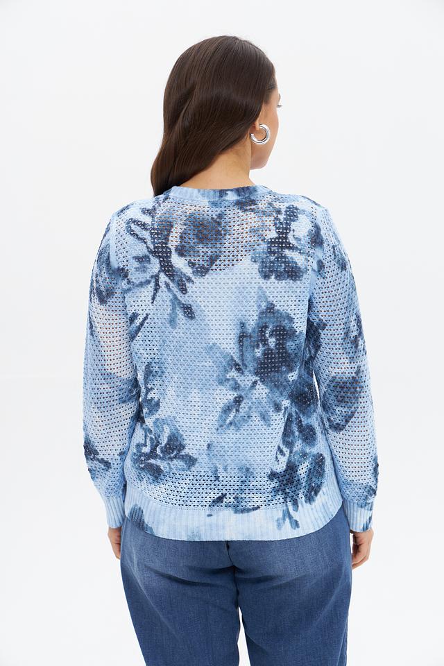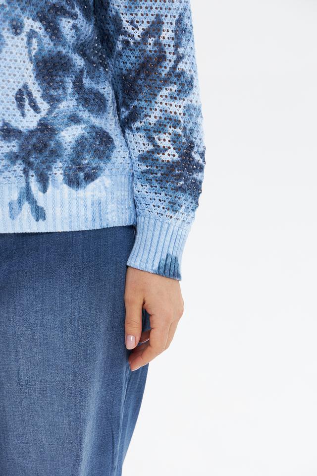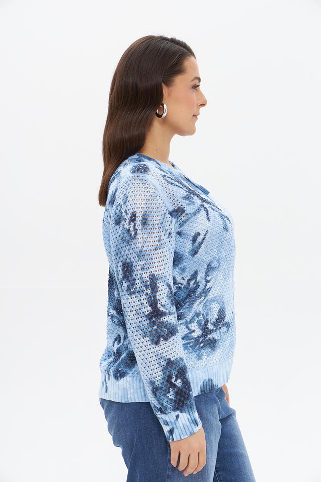Этот жакет от Rabe collection станет прекрасным дополнением к вашему гардеробу. Модель выполнена в нежном голубом цвете и украшена ярким цветочным принтом, что придает ей особую женственность и очарование.