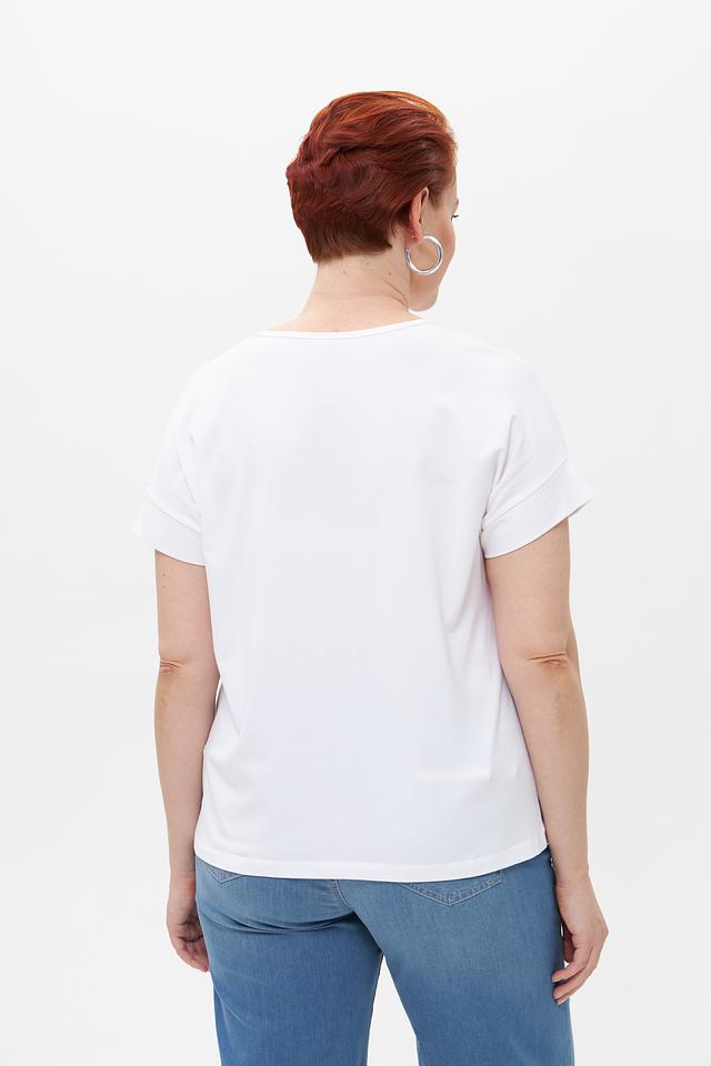 Эта стильная футболка от Rabe collection выполнена в белом цвете и станет универсальной базой для создания различных образов. Модель имеет прямой крой и короткий рукав с небольшим отворотом, что придает ей непринужденный вид.