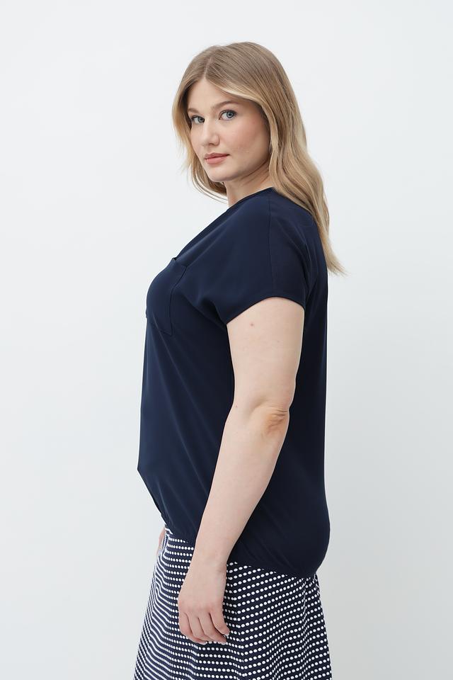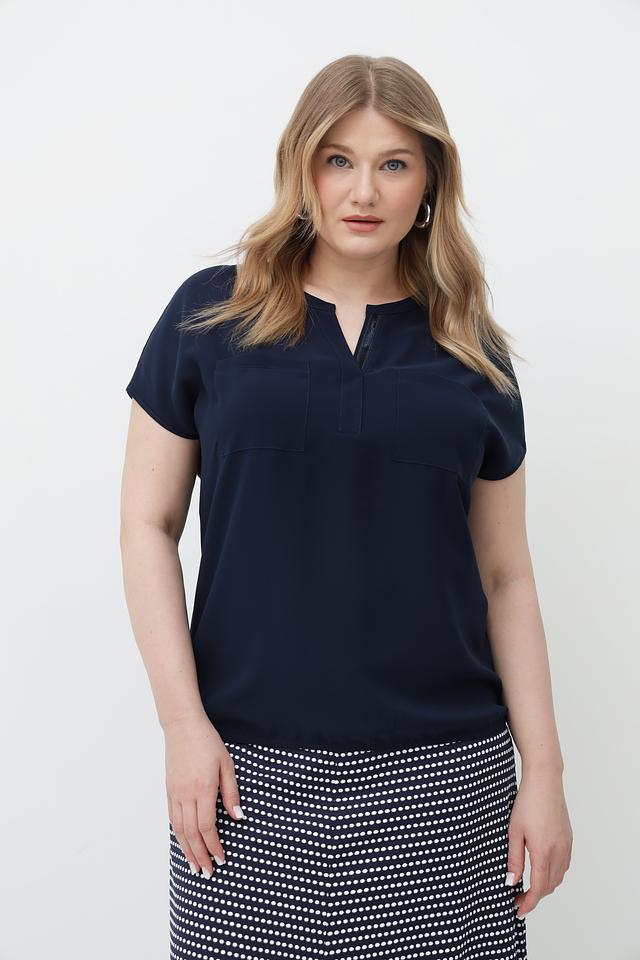 Темно-синяя блузка от Rabe collection из 100% полиэстера. Модель с короткими рукавами и накладным карманом на груди. Идеальный выбор для создания элегантного и комфортного образа. Состав: полиэстер 100%