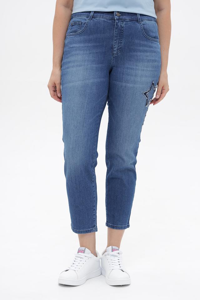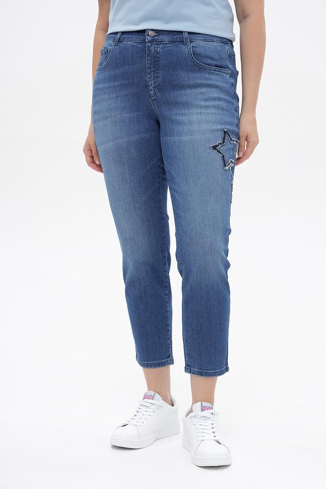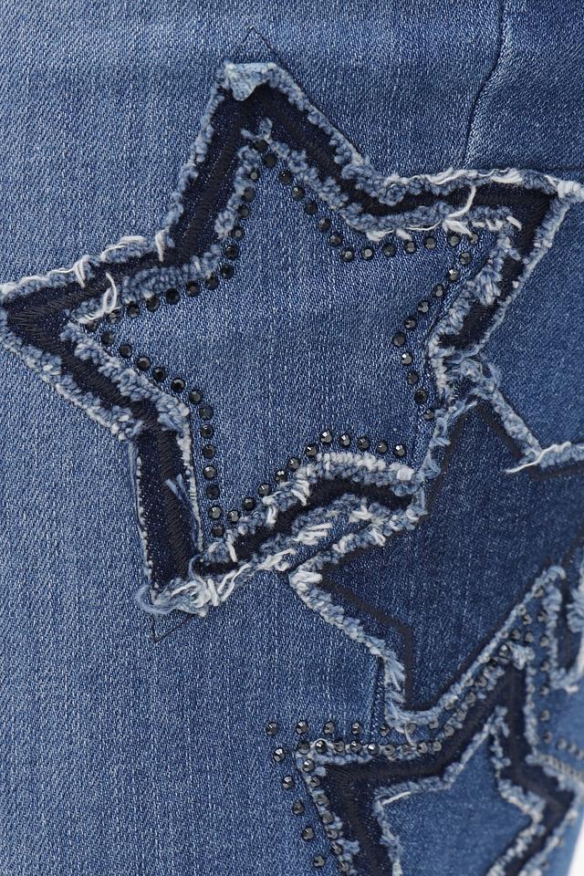 Дизайн джинсов дополнен стильной вышивкой в виде звезд, расположенной на штанине. Классическая пятикарманная конструкция включает удобные передние и задние карманы.
