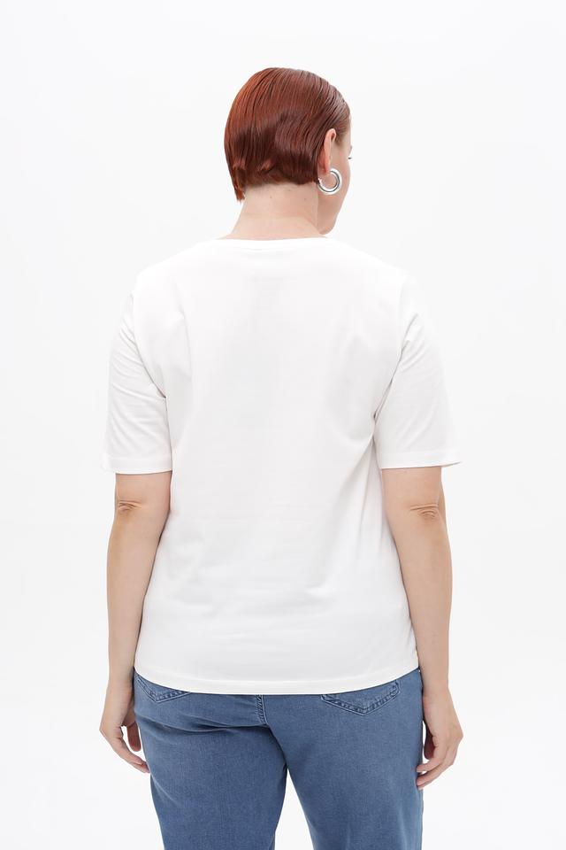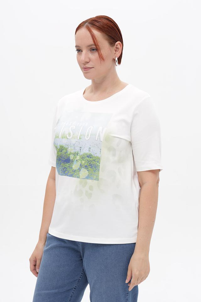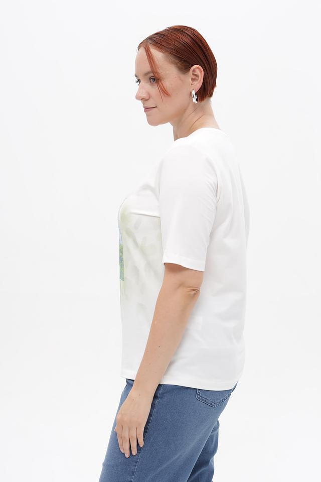 Белая футболка от Rabe collection с ярким принтом в стиле импрессионизм. Изготовлена из мягкого хлопка с добавлением эластана для комфорта и хорошей посадки. Состав: хлопок 95%, эластан 5%