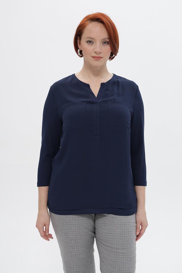 Темно-синяя блуза от Rabe collection из 100% полиэстера — это стильное и комфортное решение для повседневного гардероба. Модель с V-образным вырезом и накладными карманами придаст образу аккуратность и женственность. Состав: полиэстер 100%
