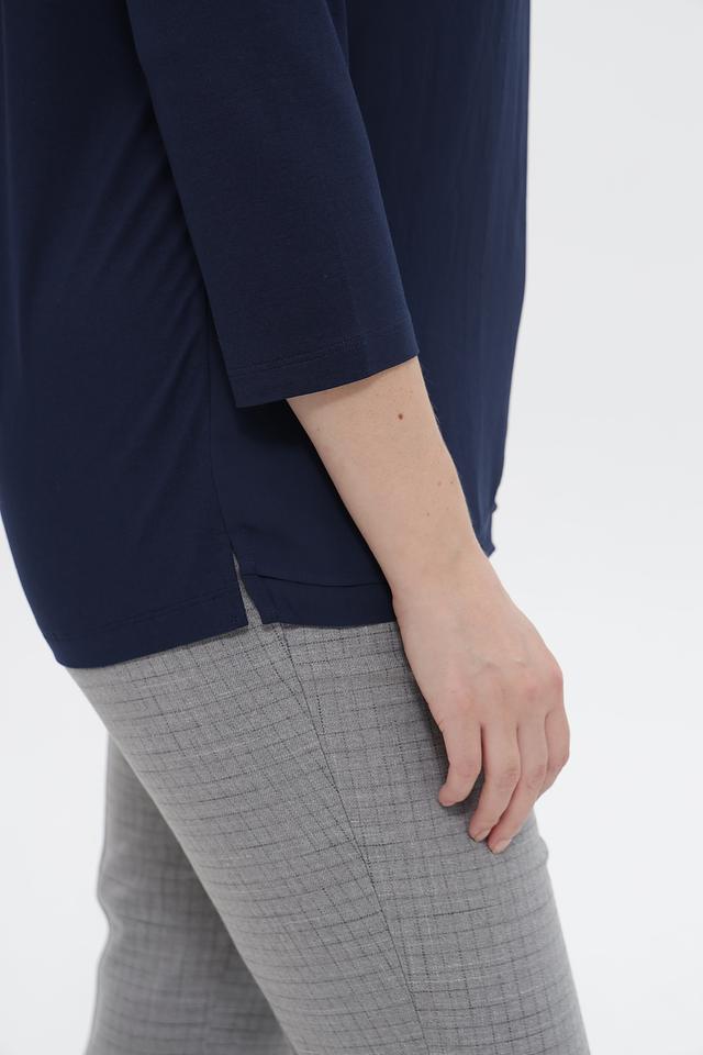 Рукава блузы длиной 3/4 идеально подходят для теплой погоды или для создания многослойных образов. Прямой крой обеспечивает комфортную посадку по фигуре, не сковывая движений. Блуза легко сочетается с брюками, юбками и джинсами, позволяя создавать разнообразные стильные комплекты.