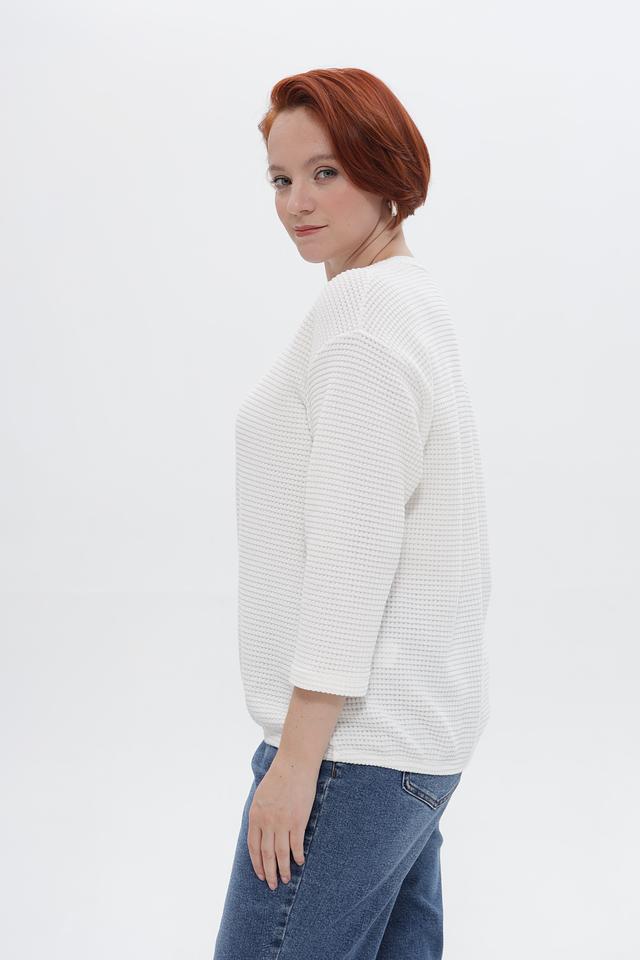 - Вафельная текстура придает блузке оригинальный вид.
