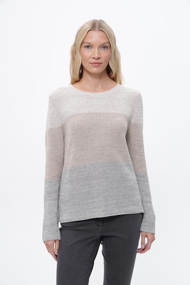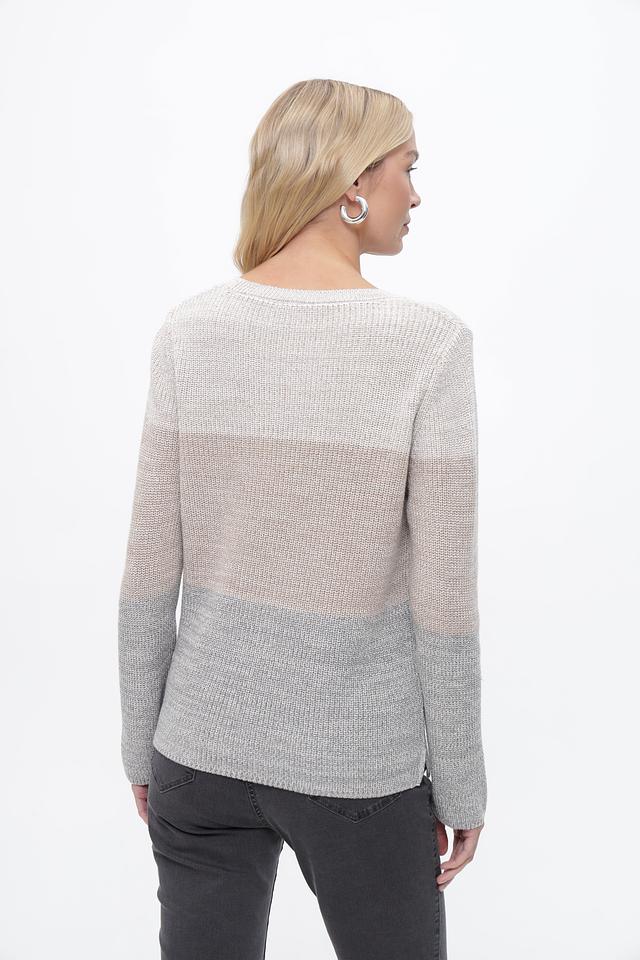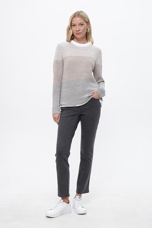 Стильный пуловер Rabe collection серого цвета с длинными рукавами. Изготовлен из мягкого сочетания хлопка и полиакрила с добавлением металлизированной нити, что придает изделию лёгкий блеск. Состав: хлопок 47%, полиакрил 47%, метализ.нить 6%