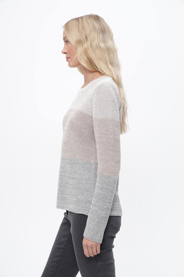 Состав пуловера: 47% хлопок, 47% полиакрил, 6% металлизированная нить. Это сочетание обеспечивает мягкость, тепло и лёгкий уход за изделием. Пуловер станет отличным выбором для создания повседневных образов.