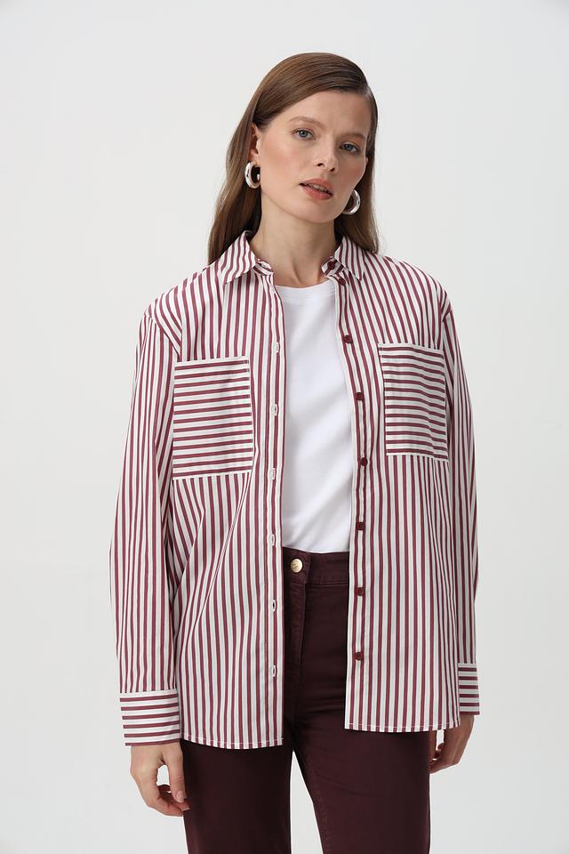 Основной цвет рубашки – красный, с чередованием белых полос. Благодаря использованию хлопка в составе, рубашка приятна к телу и хорошо пропускает воздух. Добавление полиэстера и эластана обеспечивает прочность и эластичность изделия, а также облегчает уход за ним.
