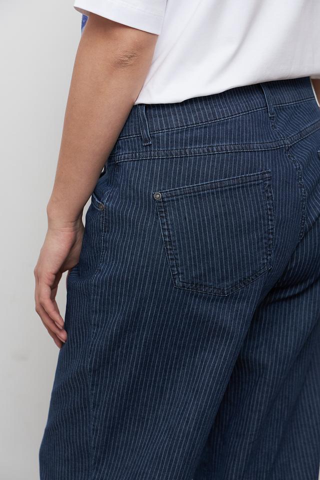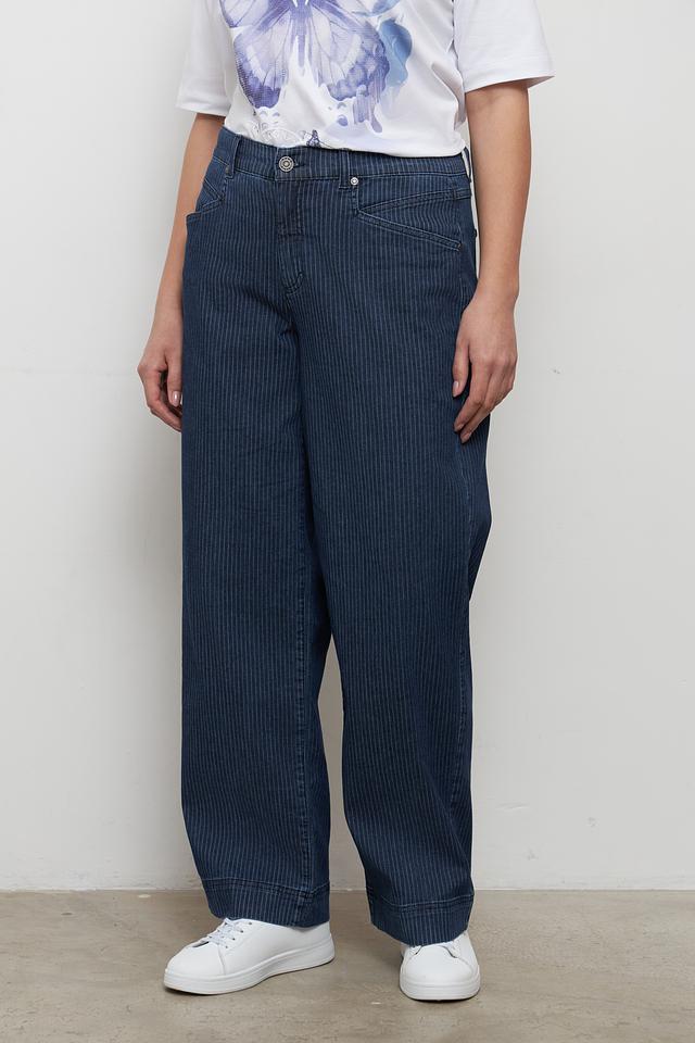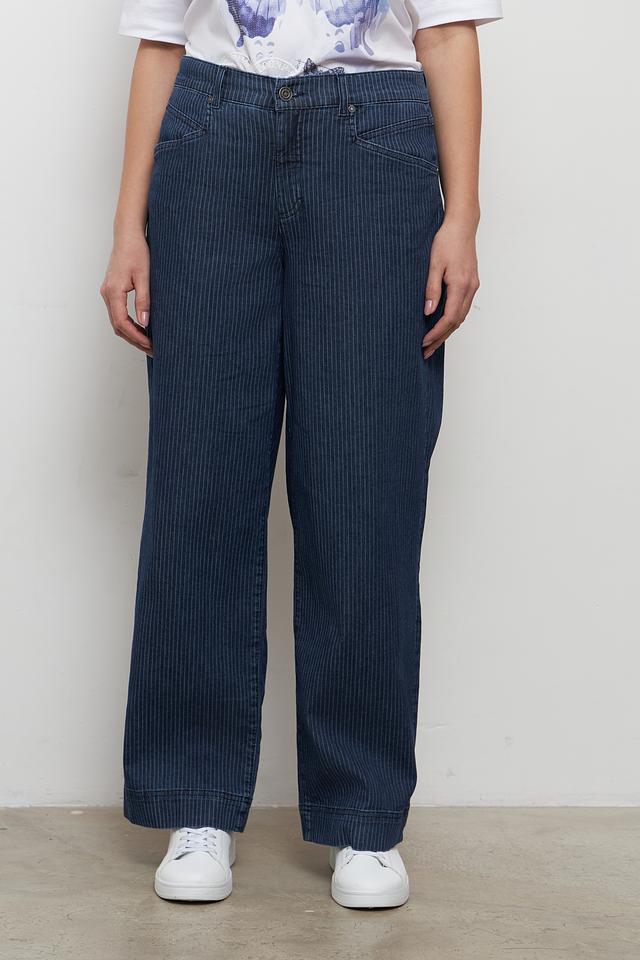 Джинсы Rabe collection синего цвета с вертикальной полоской отличаются свободным кроем и высокой посадкой. Модель выполнена из хлопка с добавлением полиэстера и эластана для комфорта и износостойкости. Состав: хлопок 90%, полиэстер 8%, эластан 2%