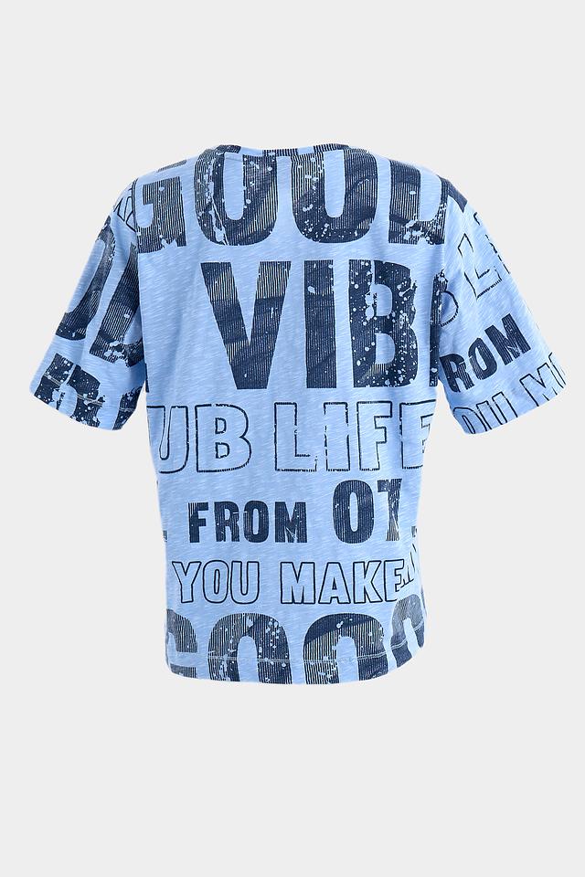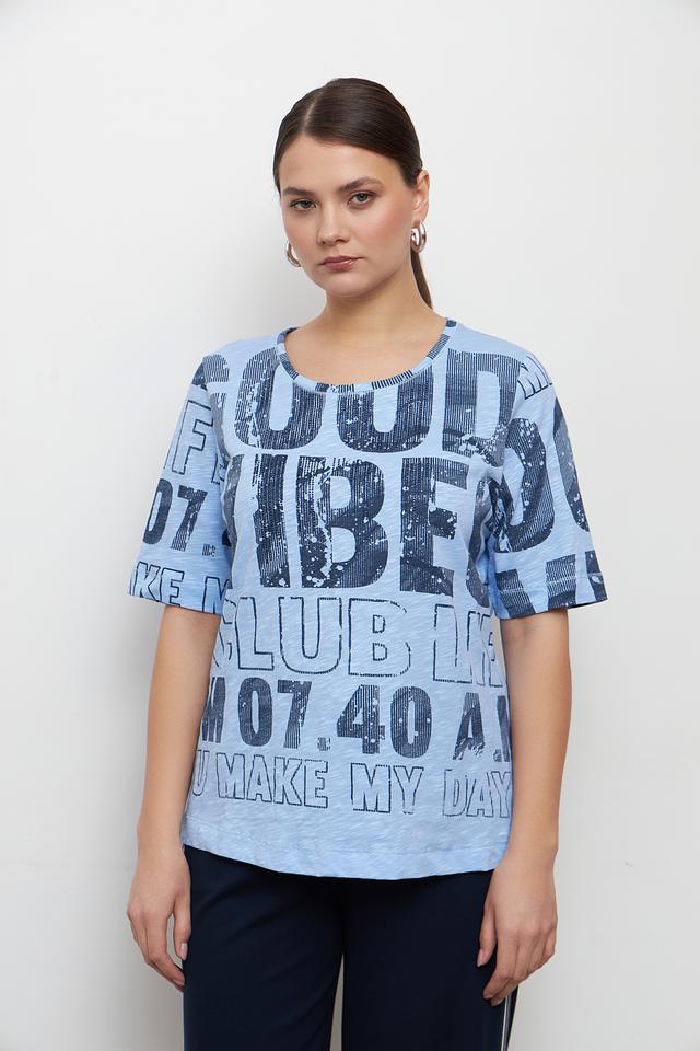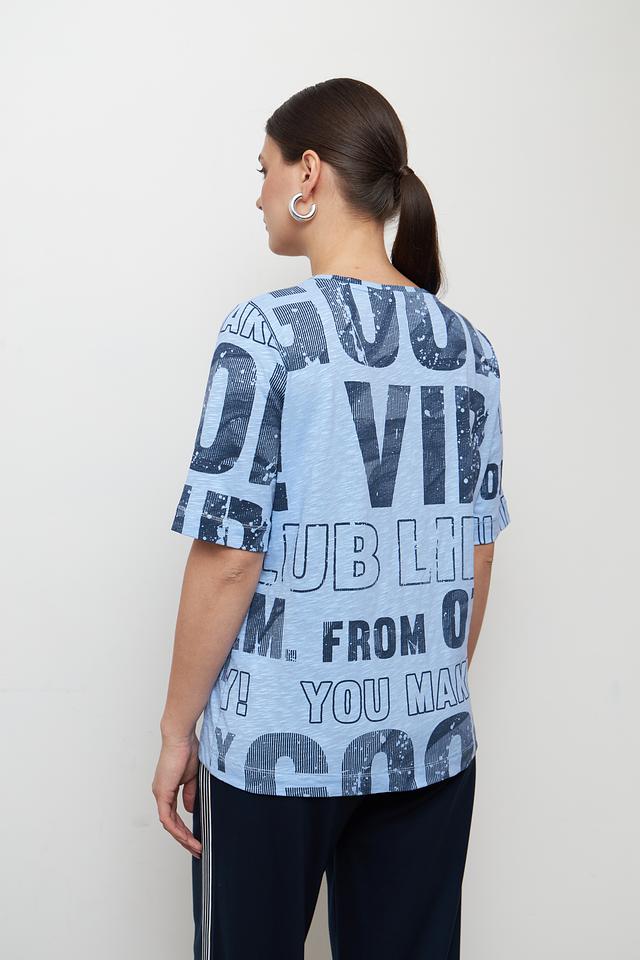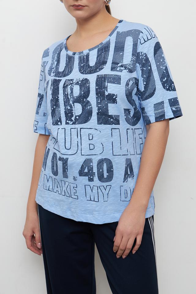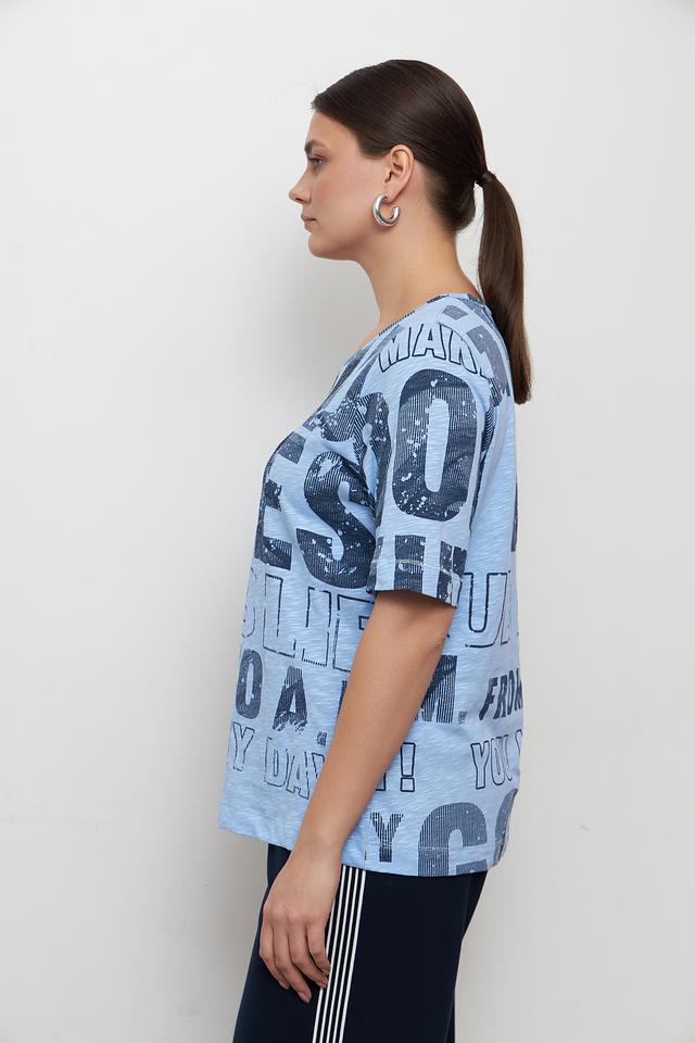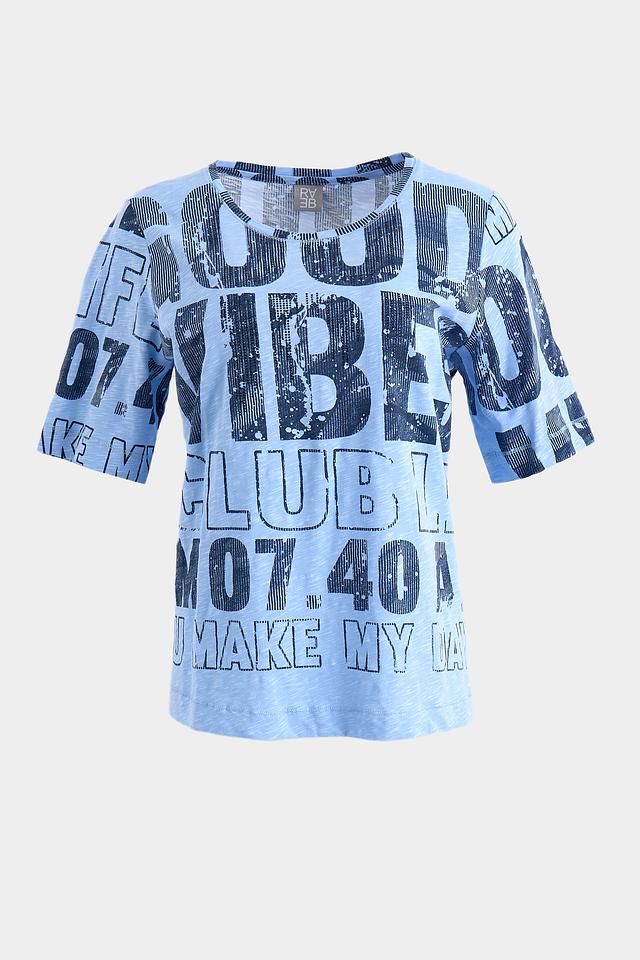 Голубая футболка от Rabe collection с ярким принтом и коротким рукавом. Изготовлена из 100% хлопка, обеспечивающего комфорт и воздухопроницаемость. Стильный и удобный вариант для повседневного образа. Состав: хлопок 100%