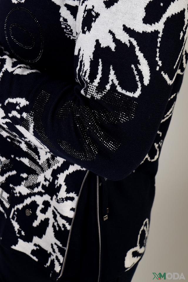 Этот стильный пуловер от Rabe collection станет прекрасным дополнением к вашему гардеробу. Пуловер выполнен в тёмно-синем цвете и украшен ярким цветочным принтом, который придает ему особую изысканность.