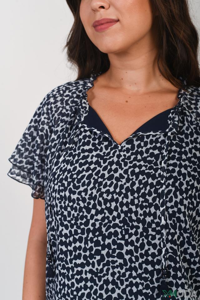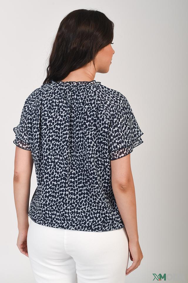 Синяя блуза Rabe collection с оригинальным леопардовым принтом станет стильным дополнением к вашему гардеробу. Модель выполнена из лёгкого полиэстера и имеет короткие рукава с воланами. Состав: полиэстер 100%, Состав_подкладка вискоза 92%, Состав_подкладка эластан 8%