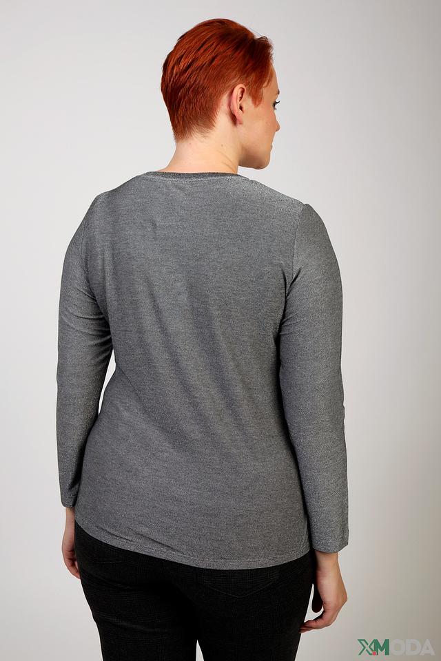 Состав ткани: 59% вискоза, 38% металлизированная нить, 3% эластан. Такой состав обеспечивает приятные тактильные ощущения, легкий блеск и хорошую посадку по фигуре. Эта футболка идеально подойдет для создания повседневных и вечерних образов.