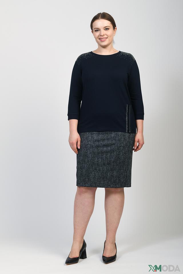 Особый акцент в дизайне пуловера – декор из страз, расположенный на плечах, и вертикальная молния, украшенная стразами, которая добавляет изделию изысканности и оригинальности. Пуловер изготовлен из приятной к телу ткани, в составе которой вискоза, модал и эластан, что обеспечивает комфорт при носке и хорошую посадку по фигуре.