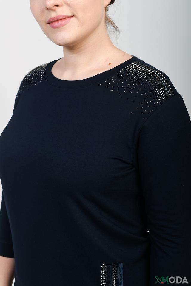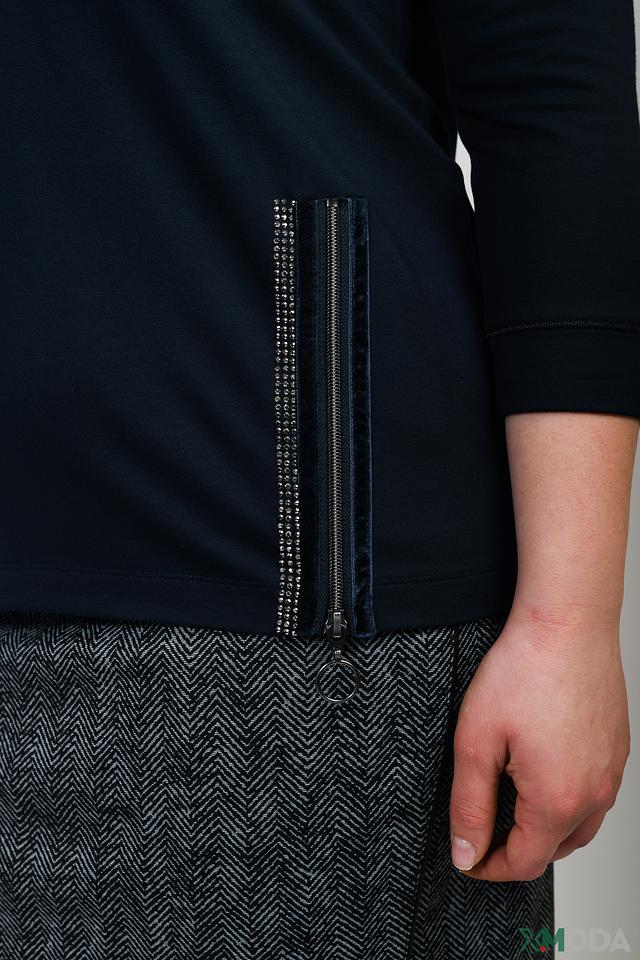 Стильный пуловер Rabe collection тёмно-синего цвета с оригинальным декором из страз и молнии. Модель с рукавом 3/4 и удобным кроем станет отличным дополнением к вашему гардеробу. Состав: вискоза 45%, модал 45%, эластан 10%