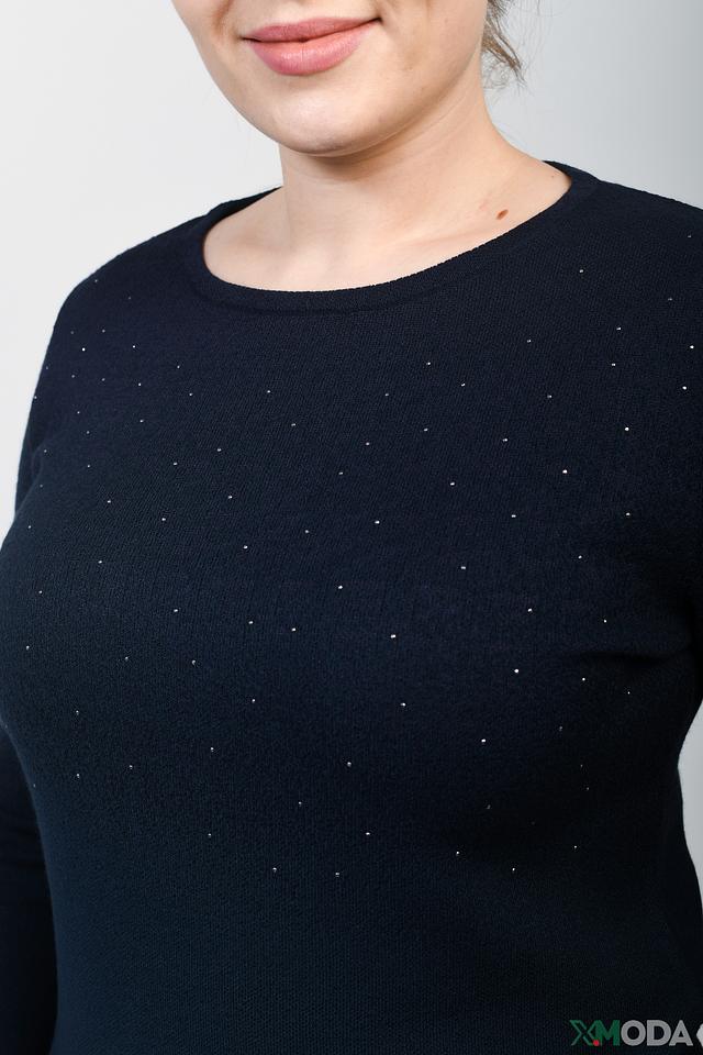 Пуловер имеет классический крой с круглым вырезом горловины и длинными рукавами. Особый шарм изделию придаёт деликатная отделка из пайеток, расположенных на передней части. Такой декор добавляет образу праздничности и изысканности.