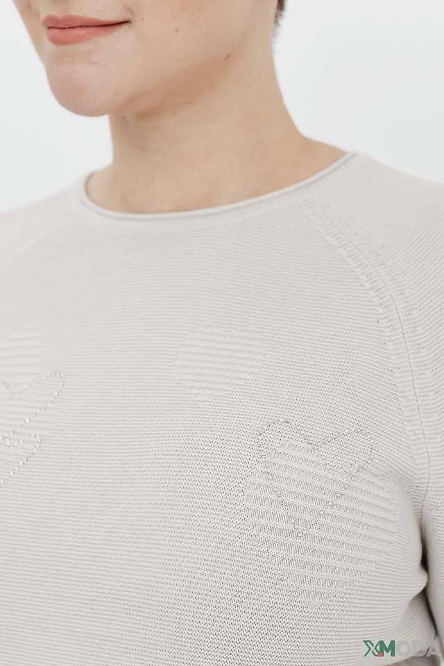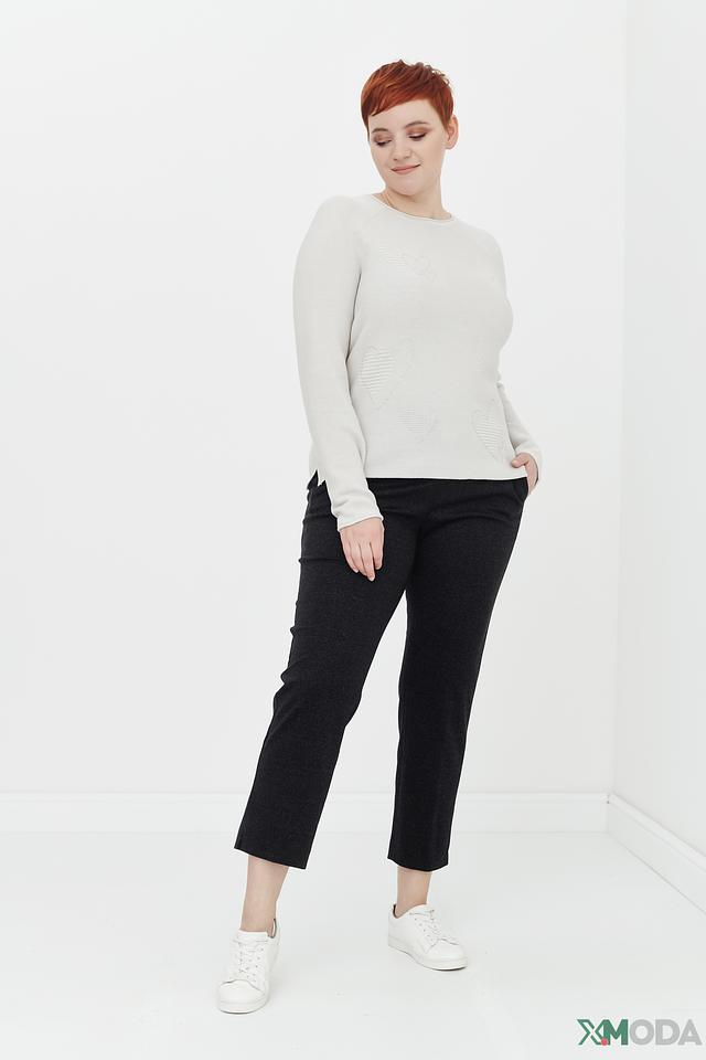 Особенностью данного пуловера является деликатный узор в виде небольших сердец, которые придают изделию романтичный и нежный вид. Пуловер изготовлен из высококачественного материала, сочетающего в себе 50% хлопка и 50% полиакрила.