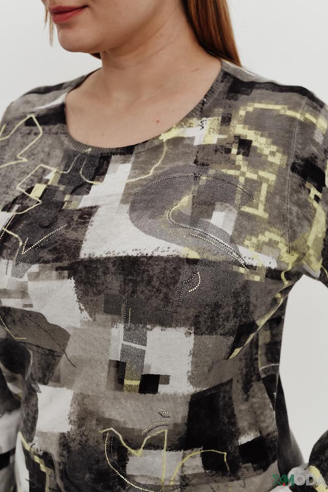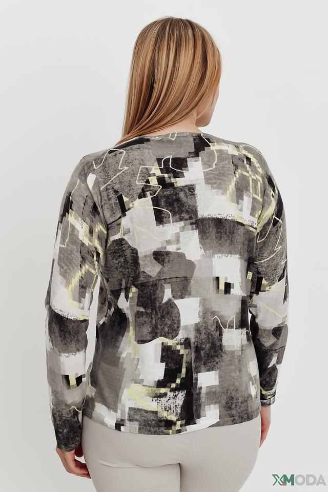 Женский пуловер Rabe collection серого цвета с оригинальным абстрактным принтом. Модель выполнена из мягкого хлопка, обеспечивающего комфорт в носке. Идеально сочетается с брюками и джинсами. Состав: хлопок 100%