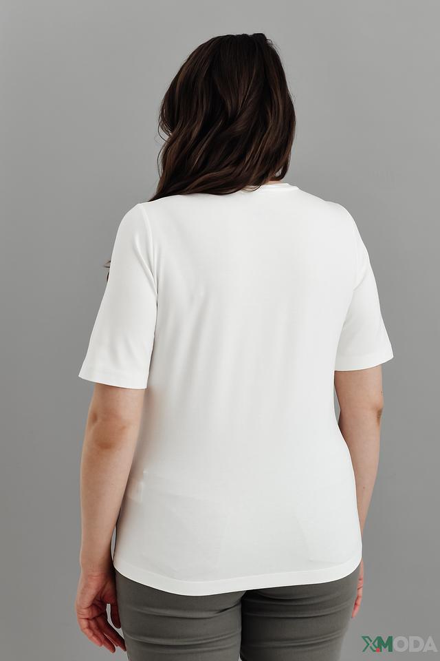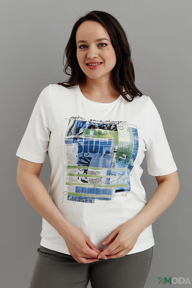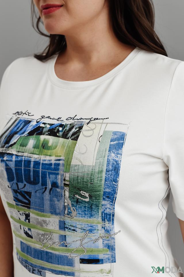 Белая футболка от Rabe collection с оригинальным принтом в стиле абстракции. Изготовлена из мягкой вискозы с добавлением эластана для комфорта и хорошей посадки. Состав: вискоза 92%, эластан 8%