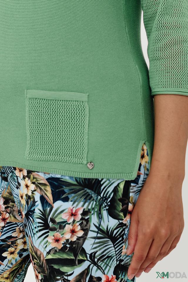 Женский пуловер Rabe collection мятного цвета – это стильная и комфортная модель с рукавами 3/4 и оригинальной текстурой. Пуловер выполнен из мягкого хлопка с добавлением полиакрила, что обеспечивает приятные тактильные ощущения и простоту в уходе. Состав: хлопок 50%, полиакрил 50%