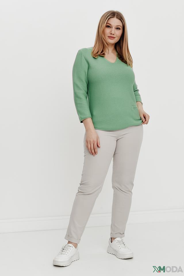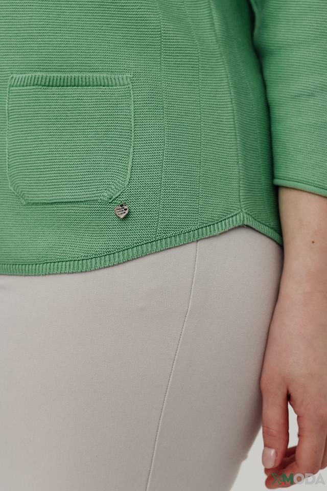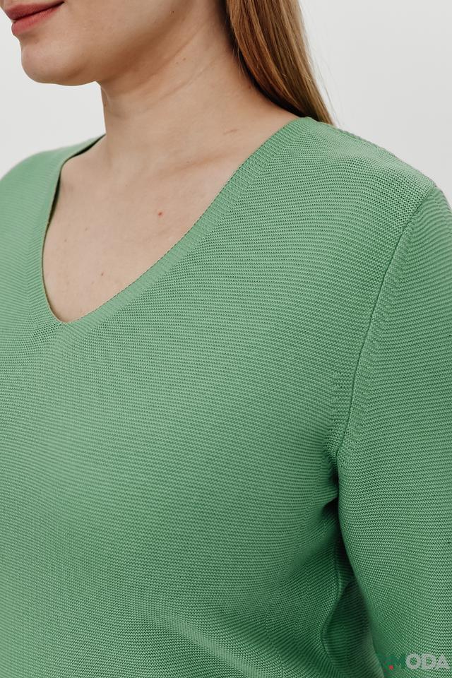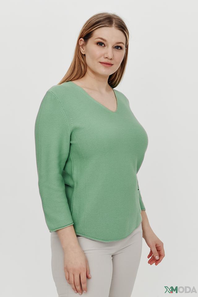 Женский пуловер Rabe collection мятного цвета с V-образным вырезом и рукавами 3/4. Изготовлен из мягкого трикотажа с текстурной вязкой и имеет удобный карман на груди. Состав: хлопок 50%, полиакрил 50%