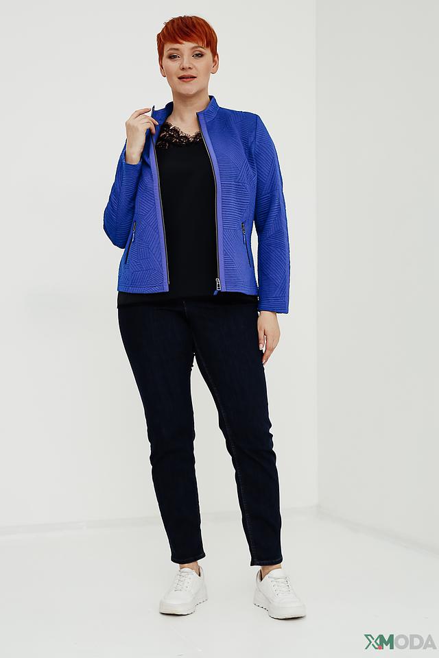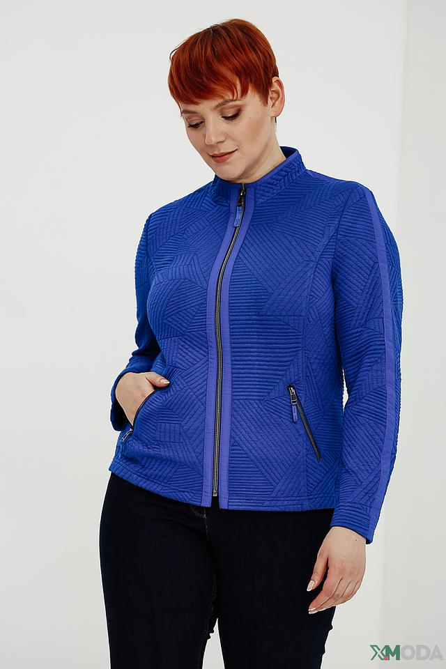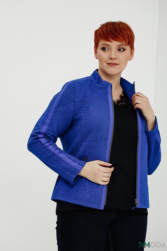 Синий жакет от Rabe collection – стильная и удобная модель с геометрическим стеганым узором. Застежка на молнию, боковые карманы и воротник-стойка делают этот жакет практичным и универсальным дополнением к вашему гардеробу. Состав: полиэстер 72%, вискоза 23%, эластан 5%