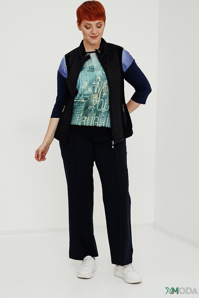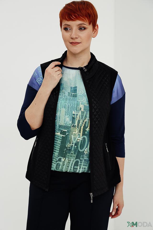 Стильный жилет Rabe collection черного цвета с оригинальным дизайном и стеганой фактурой. Модель дополнена вставками из ткани с принтом и имеет удобную застежку-молнию. Состав: полиэстер 100%