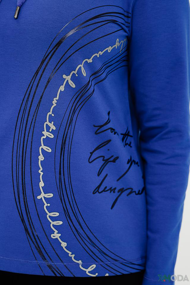 Синий пуловер от Rabe collection – удобная и стильная модель с капюшоном и оригинальным принтом. Изготовлен из мягкого хлопка с добавлением вискозы и эластана для комфорта и хорошей посадки. Состав: хлопок 60%, вискоза 35%, эластан 5%