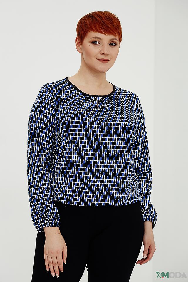 Эта стильная блуза от Rabe collection станет отличным дополнением к вашему гардеробу. Блуза выполнена в синих тонах с оригинальным геометрическим принтом в виде клетки.