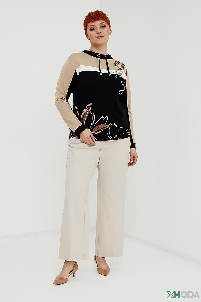 Модель имеет удобный круглый вырез горловины, дополненный шнурком. Бежевые вставки на плечах и рукавах придают изделию современный вид. Пуловер имеет слегка приталенный силуэт, который подчеркнет достоинства фигуры.