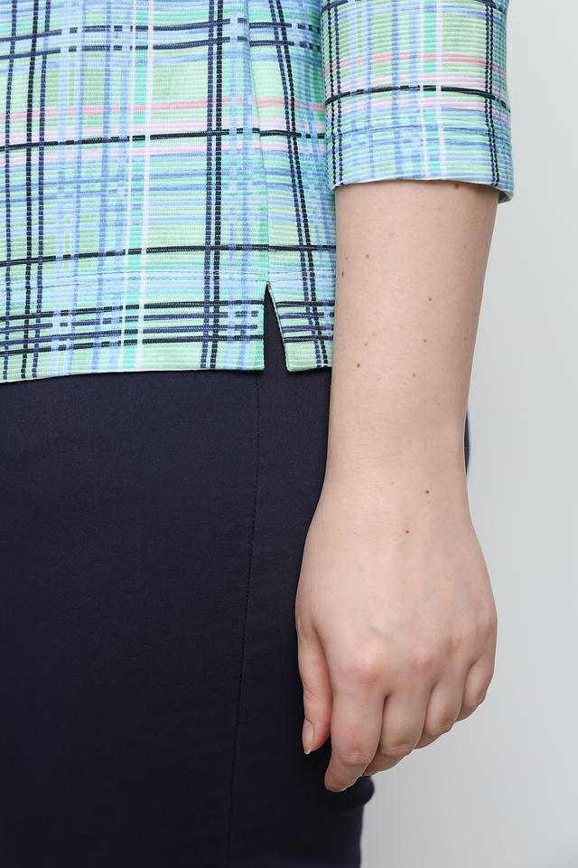 Блуза Rabe collection светло-зелёного цвета с ярким клетчатым принтом станет отличным дополнением к вашему гардеробу. Модель выполнена из приятной на ощупь ткани, имеет удобный крой и рукава 3/4. Состав: хлопок 57%, полиэстер 43%