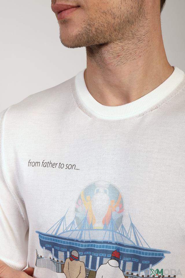 Белая футболка Radi Perugia с оригинальным принтом в виде изображения стадиона и фигур людей. Изготовлена из 100% хлопка, обеспечивающего комфорт и воздухопроницаемость. Идеальный выбор для повседневного образа. Состав: хлопок 100%