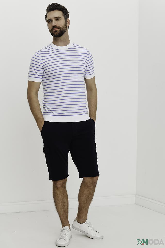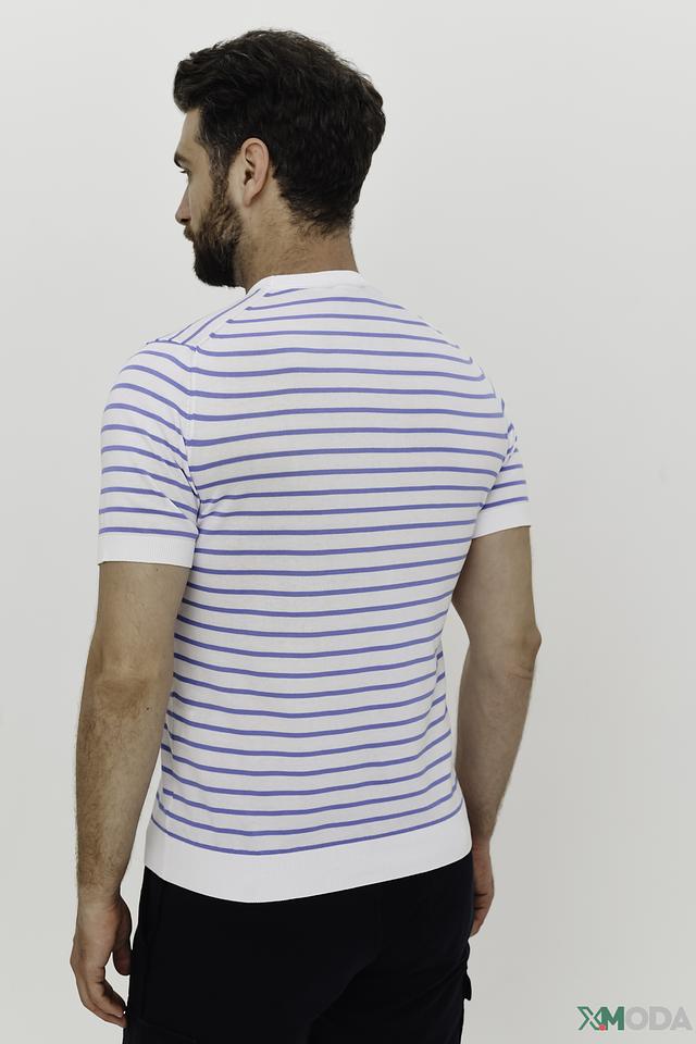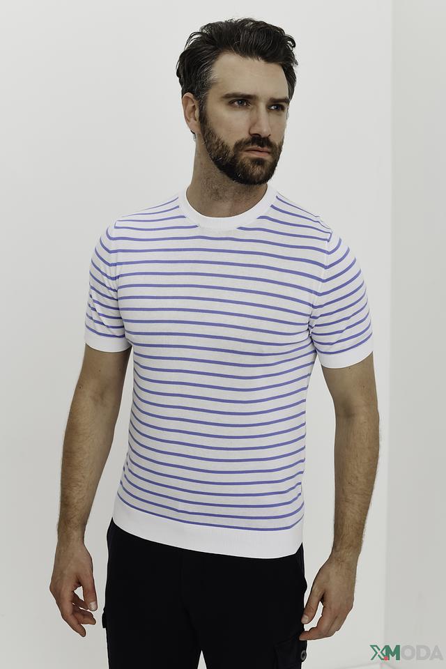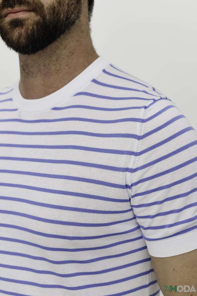 Мужская футболка Radi Perugia голубого и белого цвета в классическую полоску. Изготовлена из 100% хлопка, обеспечивающего комфорт и воздухопроницаемость. Отличный выбор для повседневного образа. Состав: хлопок 100%