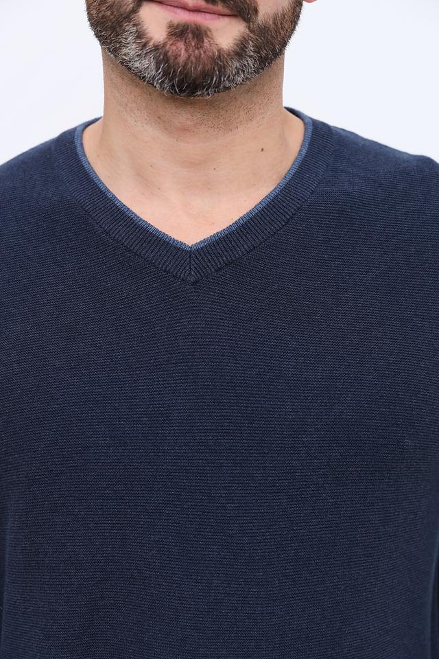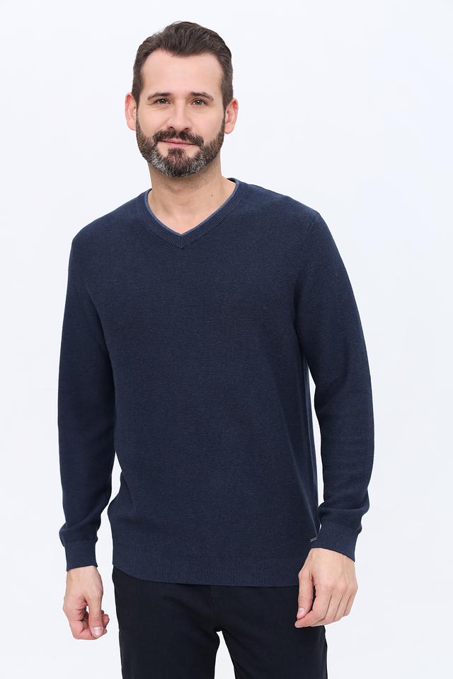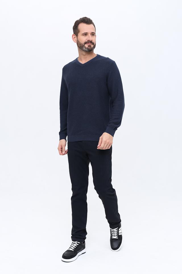 Джемпер имеет V-образный вырез, который визуально удлиняет шею и придает образу элегантность. Классический крой обеспечивает комфортную посадку по фигуре, не сковывая движений. Длинные рукава и эластичные манжеты гарантируют тепло и уют в прохладную погоду.