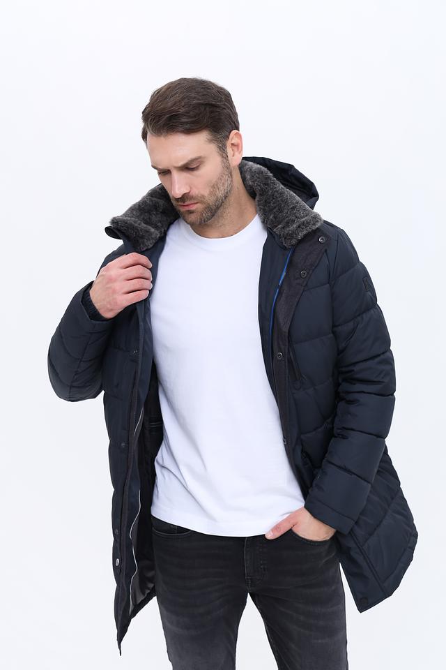 Мужское пальто Red Point тёмно-синего цвета – это стильное и практичное решение для холодной погоды. Модель выполнена в стеганом дизайне с удобным капюшоном и меховой отделкой, обеспечивающей дополнительное тепло и комфорт. Состав: полиэстер 100%