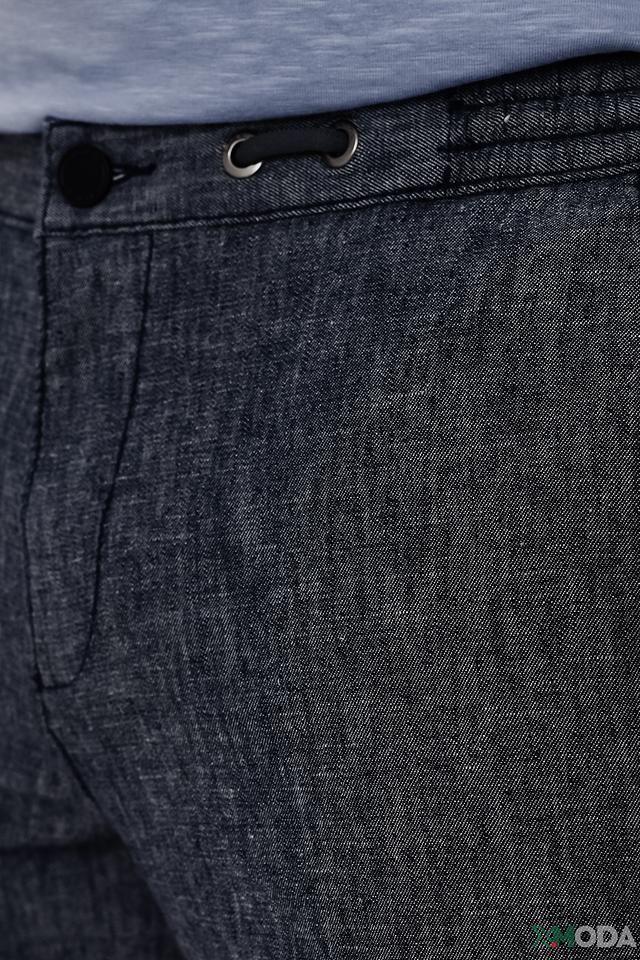 Брюки имеют классический крой, прямой силуэт и стандартную посадку. Изготовлены из высококачественного материала, сочетающего в себе 62% хлопок, 36% лен и 2% эластан. Такое сочетание обеспечивает комфорт, воздухопроницаемость и небольшую эластичность.