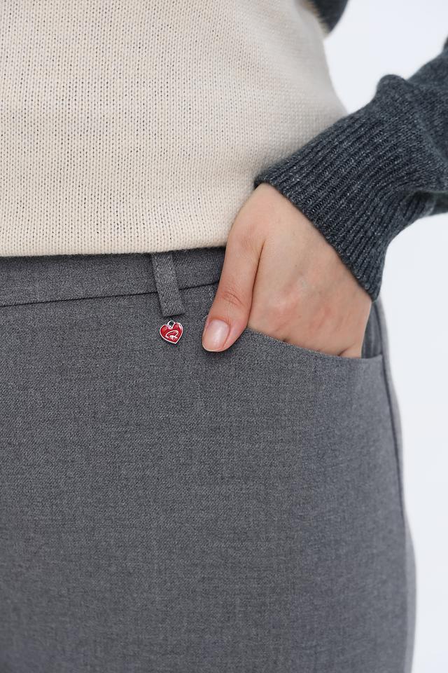 Декоративная деталь в виде небольшого значка на поясе добавляет брюкам изысканности. Брюки застегиваются на молнию и пуговицу. Модель имеет боковые карманы. Данные брюки идеально подойдут для создания стильных и комфортных образов в различных ситуациях.