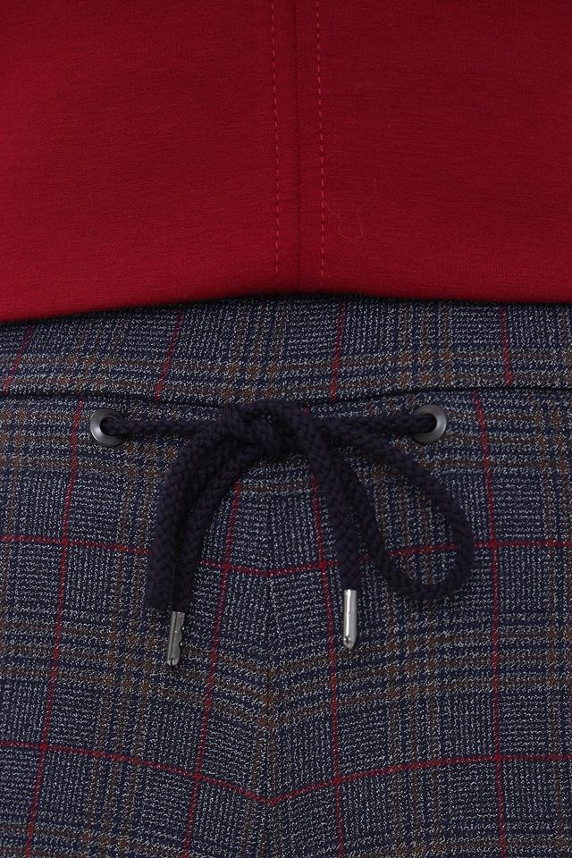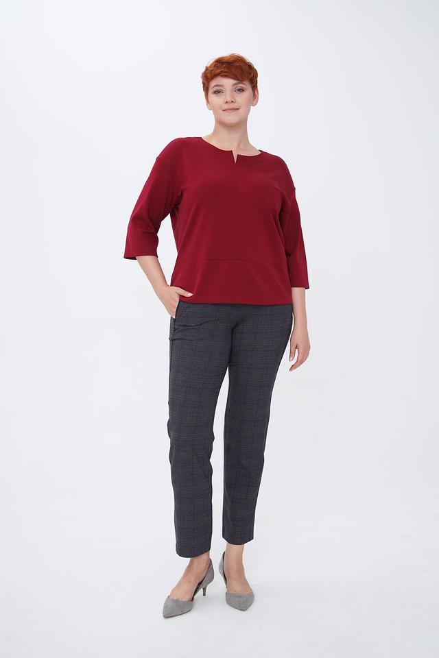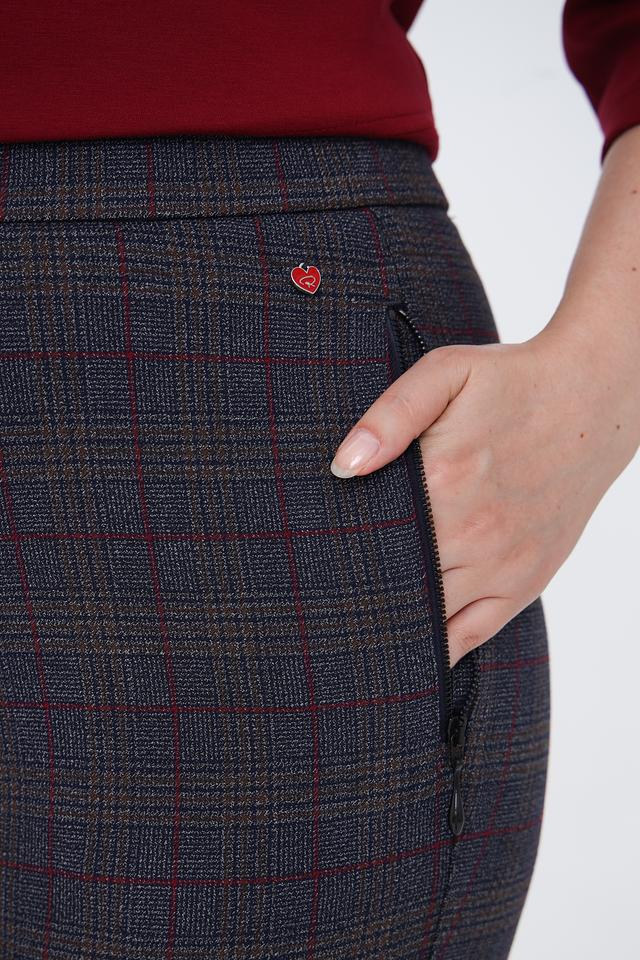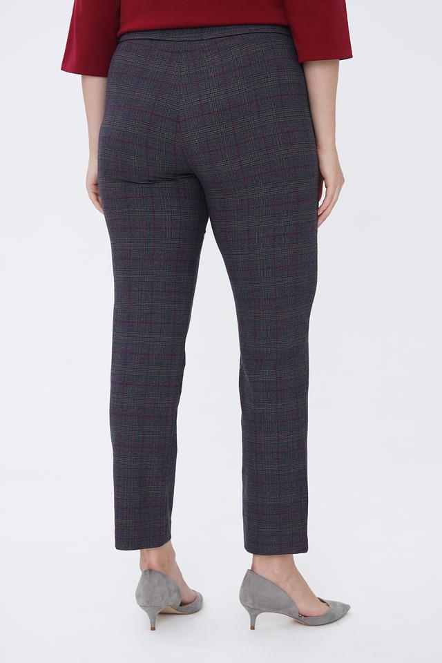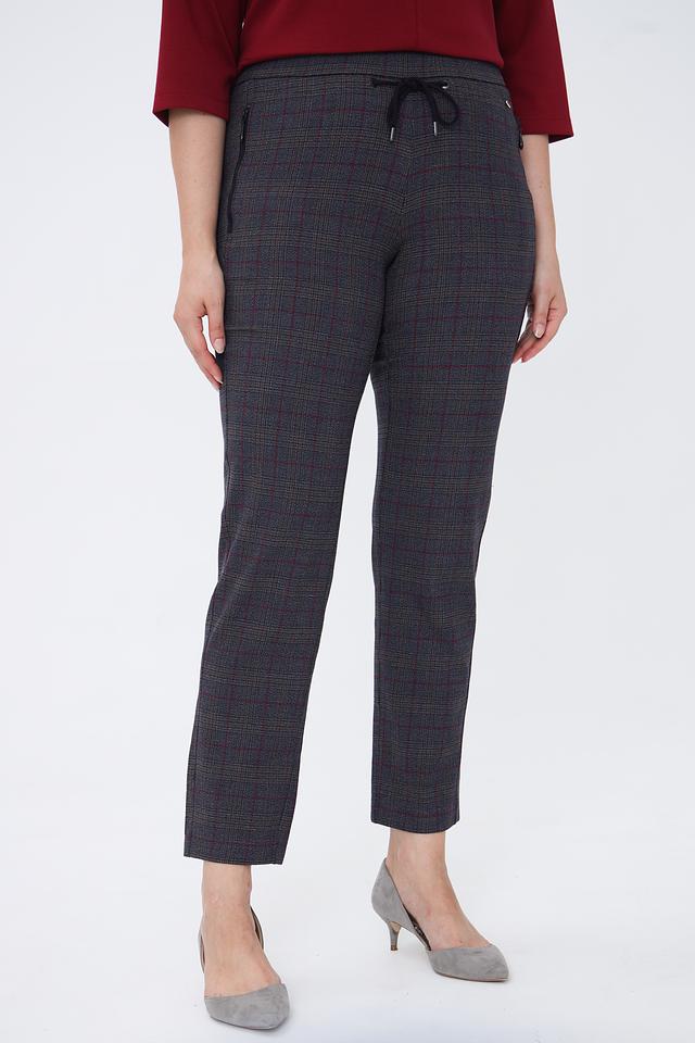 Основной цвет брюк – серый, но благодаря оригинальному клетчатому принту в сочетании красных и бежевых оттенков, они выглядят очень эффектно и интересно. Ткань, из которой пошиты брюки, состоит из полиэстера, вискозы и эластана, что обеспечивает комфорт в носке и хорошую посадку по фигуре.