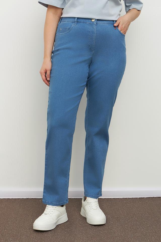 Голубые брюки от Relaxed by Toni из хлопка с добавлением полиэстера и эластана. Модель с эластичным поясом и классическим кроем. Состав: хлопок 69%, полиэстер 29%, эластан 2%