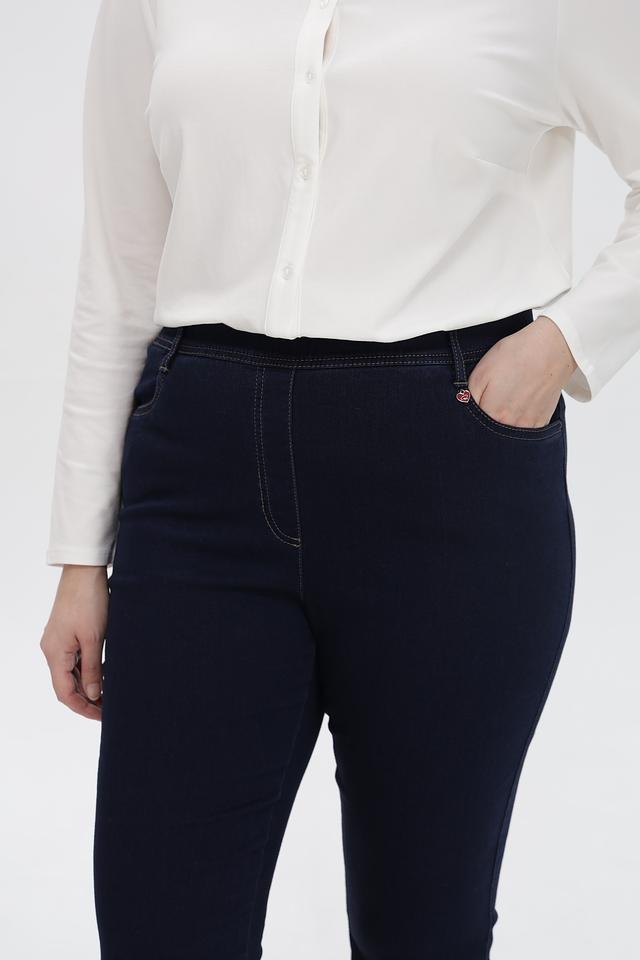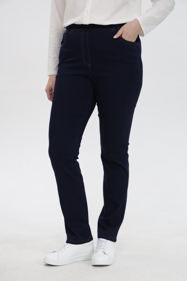 Темно-синие джинсы Relaxed by Toni с эластичным поясом и контрастными швами. Модель выполнена из комфортного сочетания хлопка и модала, обеспечивающего удобную посадку и свободу движений. Состав: модал 55%, хлопок 26%, полиэстер 17%, эластан 2%