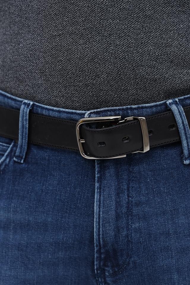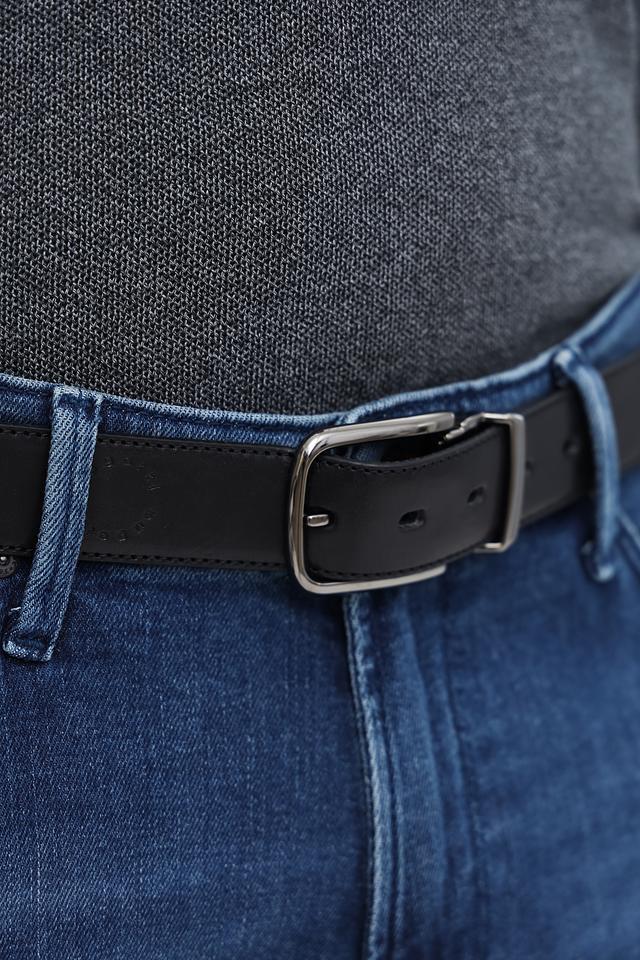 Ремень оснащён классической прямоугольной пряжкой из металла, которая надёжно фиксирует ремень на поясе. Пряжка имеет лаконичный дизайн, что подчёркивает сдержанную элегантность аксессуара.